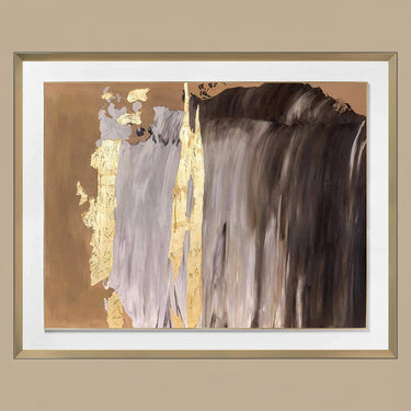 حوّل أجواء مساحتك مع هذه اللوحة المصنوعة من الأكريليك على القماش بألوان ناعمة مع شرائط من الذهب. تتميز هذه القطعة الفنية بموضوع تجريدي، لتضيف الأناقة والجاذبية إلى ديكورك.