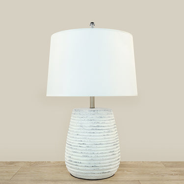 Marrying practicality with chic aesthetics, this sandstone lamp presents a textured design fusing timeless and contemporary features. Topped with a stylish shade, the lamp emits a luminosity that harmonizes with any indoor design. Whether placed beside the living room couch or positioned by a beloved armchair, this refined lamp will infuse your surroundings with a hospitable glow.
