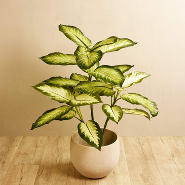 نبتة الدفنباخية الصناعية من بلومر بمظهر طبيعي وجودة عالية. يتميز نبات الدفنباخية بأوراق كبيرة ناضرة تملأها العروق، مما يجعله ديكورًا رائعًا للمنزل، وبالطبع تعد هذه النبتة خيارًا مثاليًا وآمنًا بديلًا عن نظيرتها الطبيعية لكونها سامة. تصلك النبتة جاهزة لتزيين منزلك، كل ما عليك هو ثني فروعها للخارج ووضعها في أصيص يناسب ذوقك للاستمتاع بجمالها.
