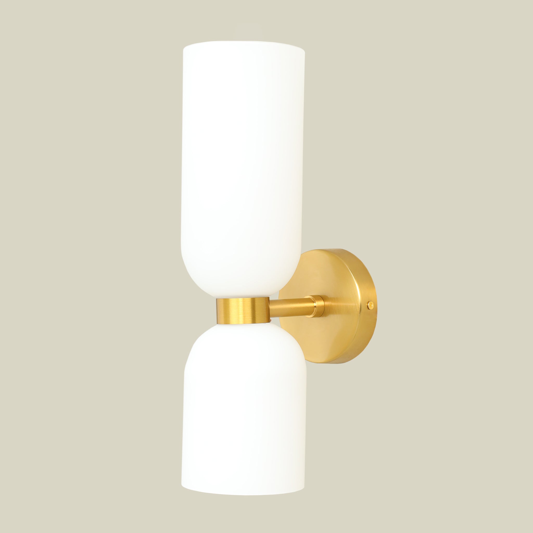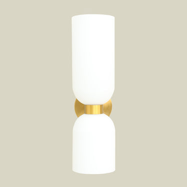 This striking wall lamp merges timeless elegance with modern design through its luxurious gold and white finish.