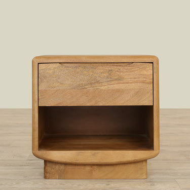 ارتقِ بجو غرفة نومك مع طاولة السرير الجانبية المصنوعة بعناية من الخشب الطبيعي.
