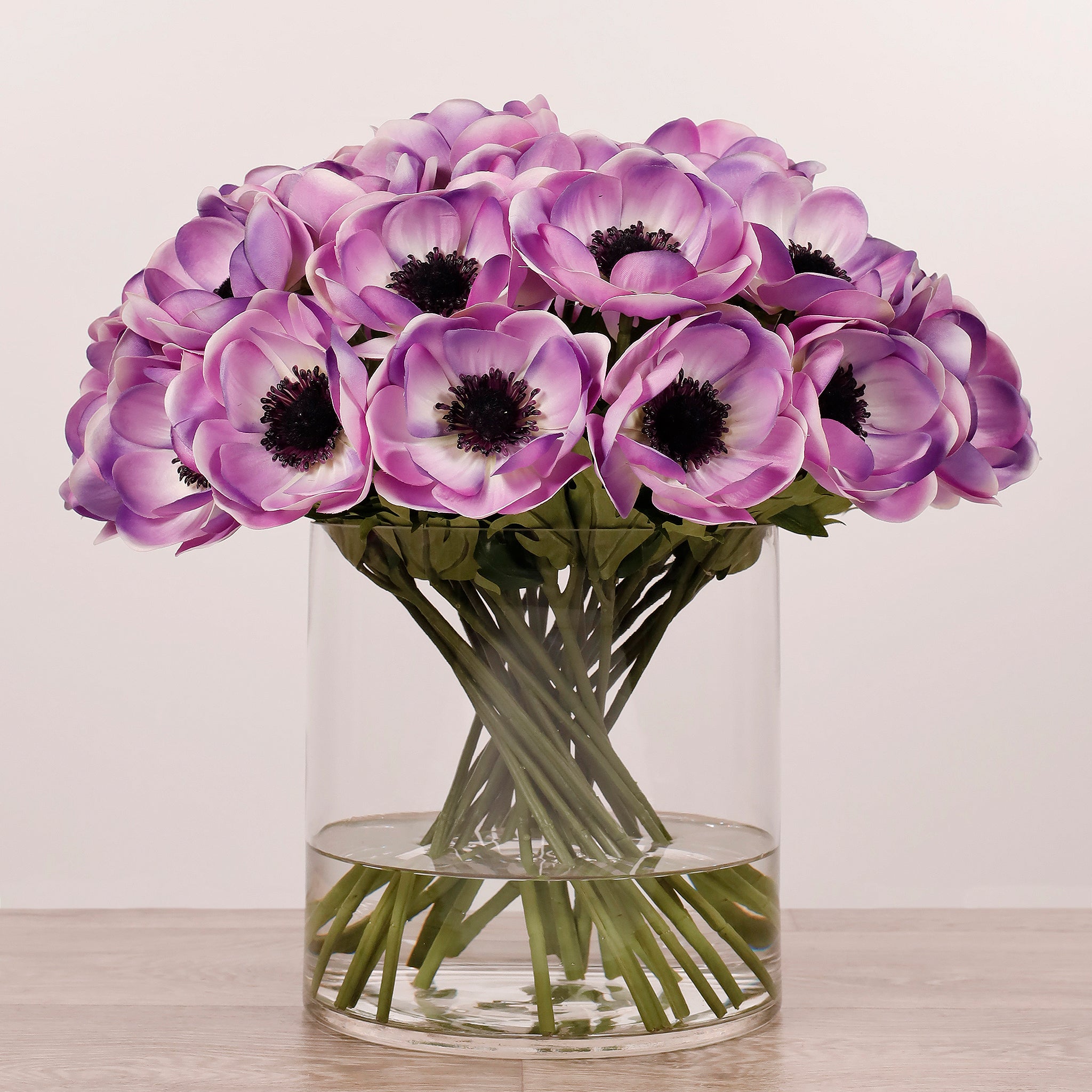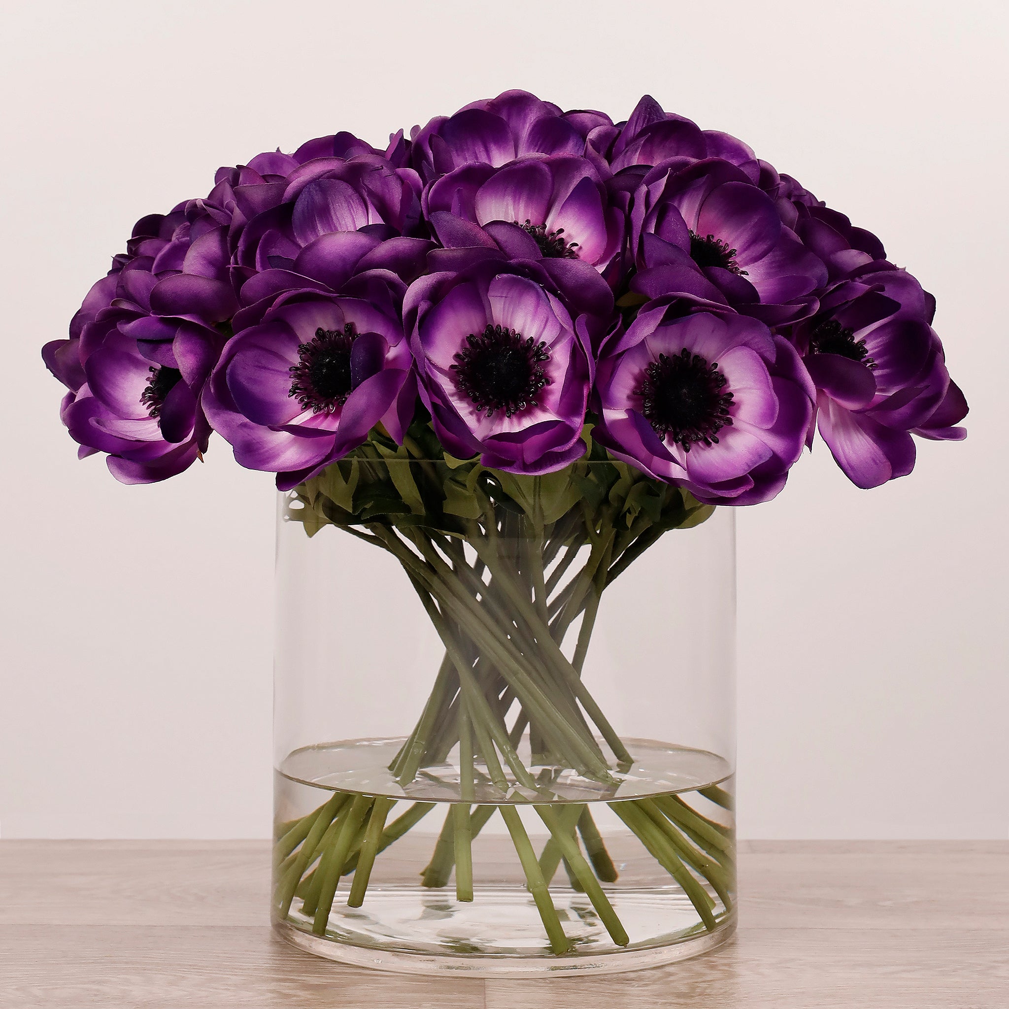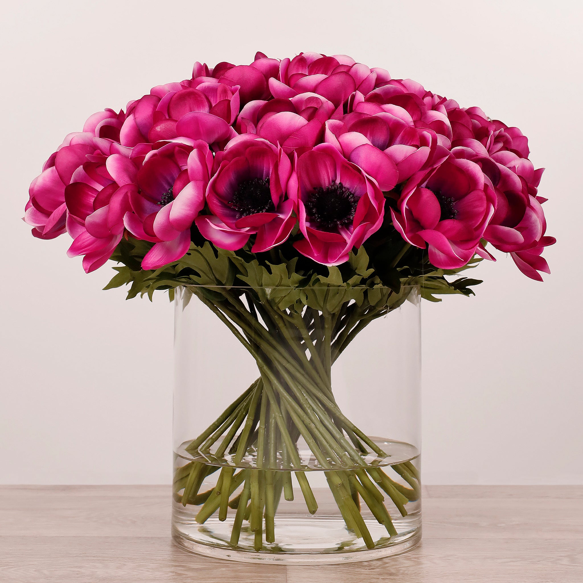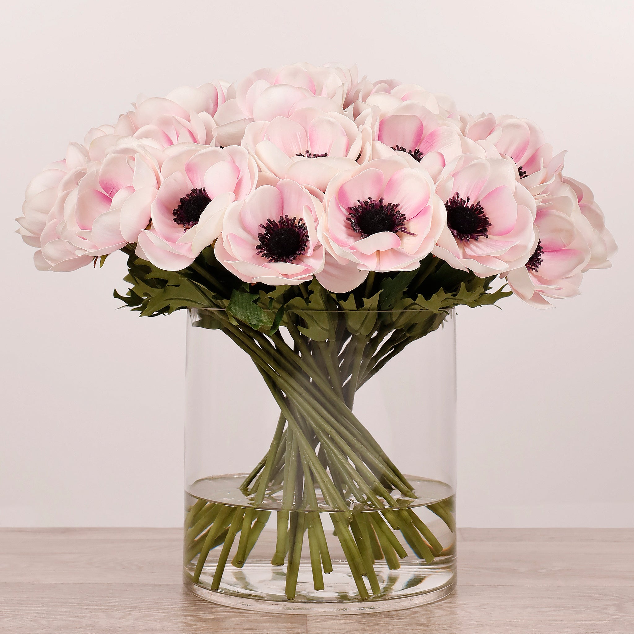 تنسيق شقائق النعمان الصناعية في إناء زجاجي