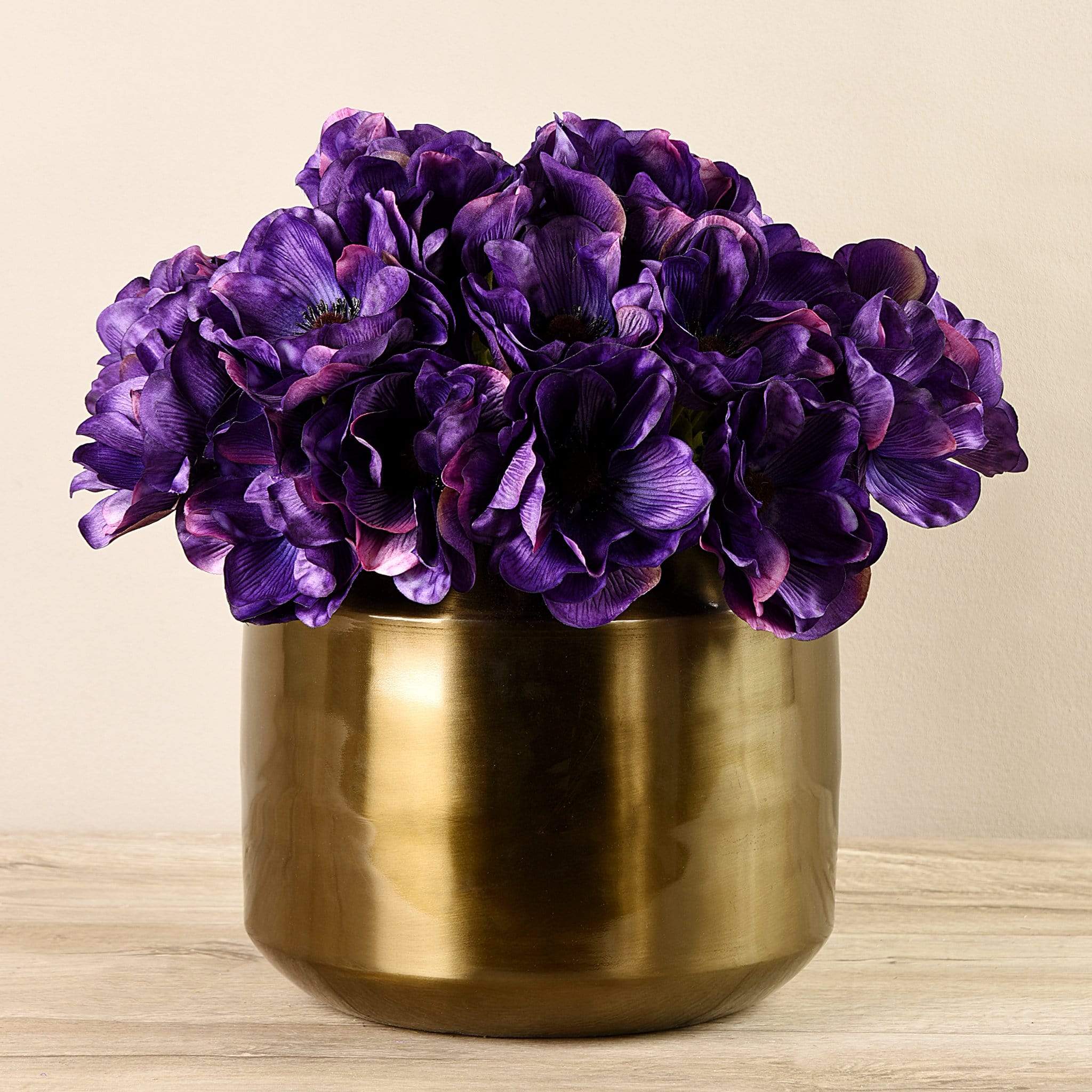 هذه الباقة من زهور شقائق النعمان الرقيقة لن تذبل أو تفقد سحرها أبدًا. الباقة مصنعة على أيدي منسقي زهور متخصصين، لتتمتع بمظهر وملمس مماثلين للزهور الطبيعية. وهي تأتيك منسقة داخل أصيص نحاسي أنيق يزيد من تألقها.