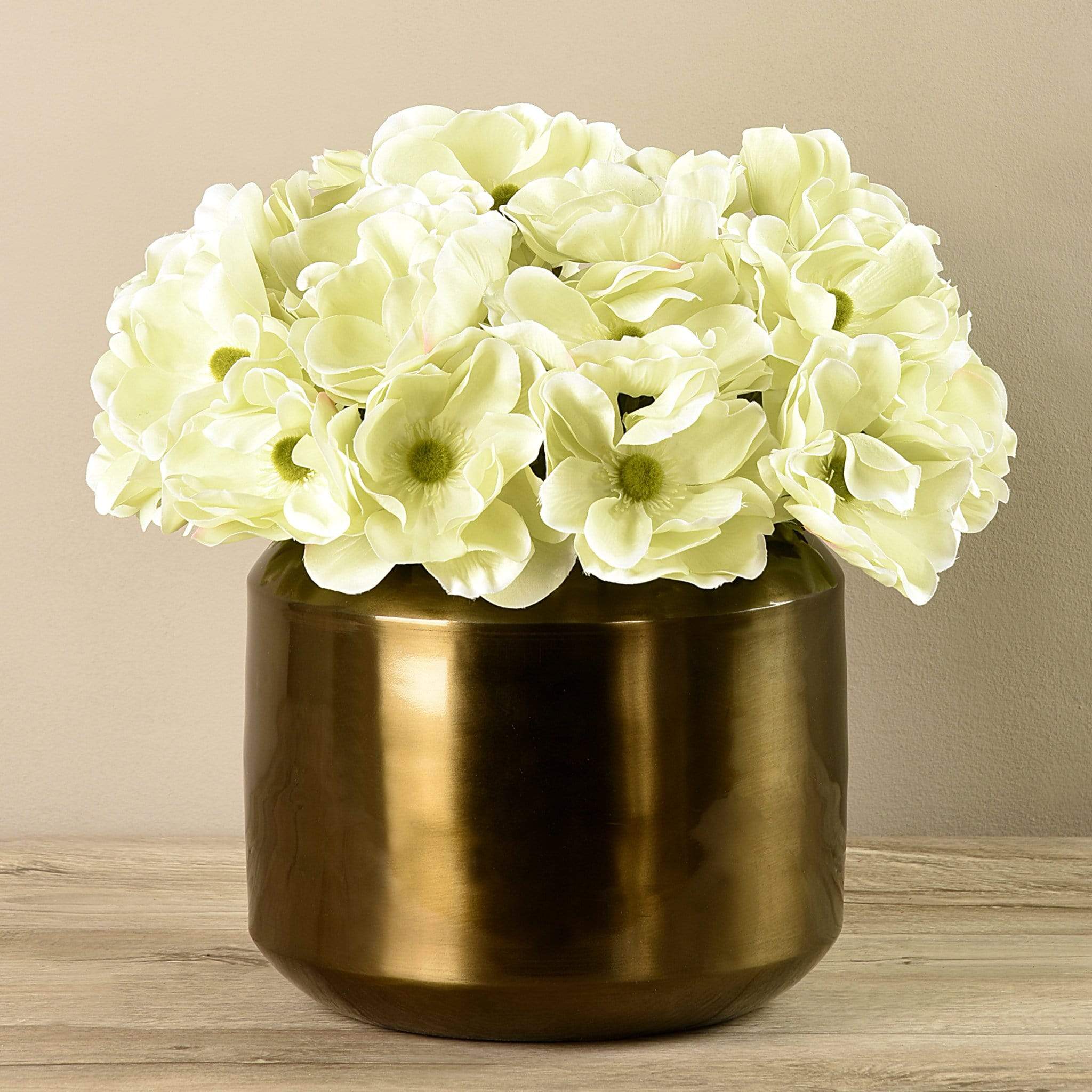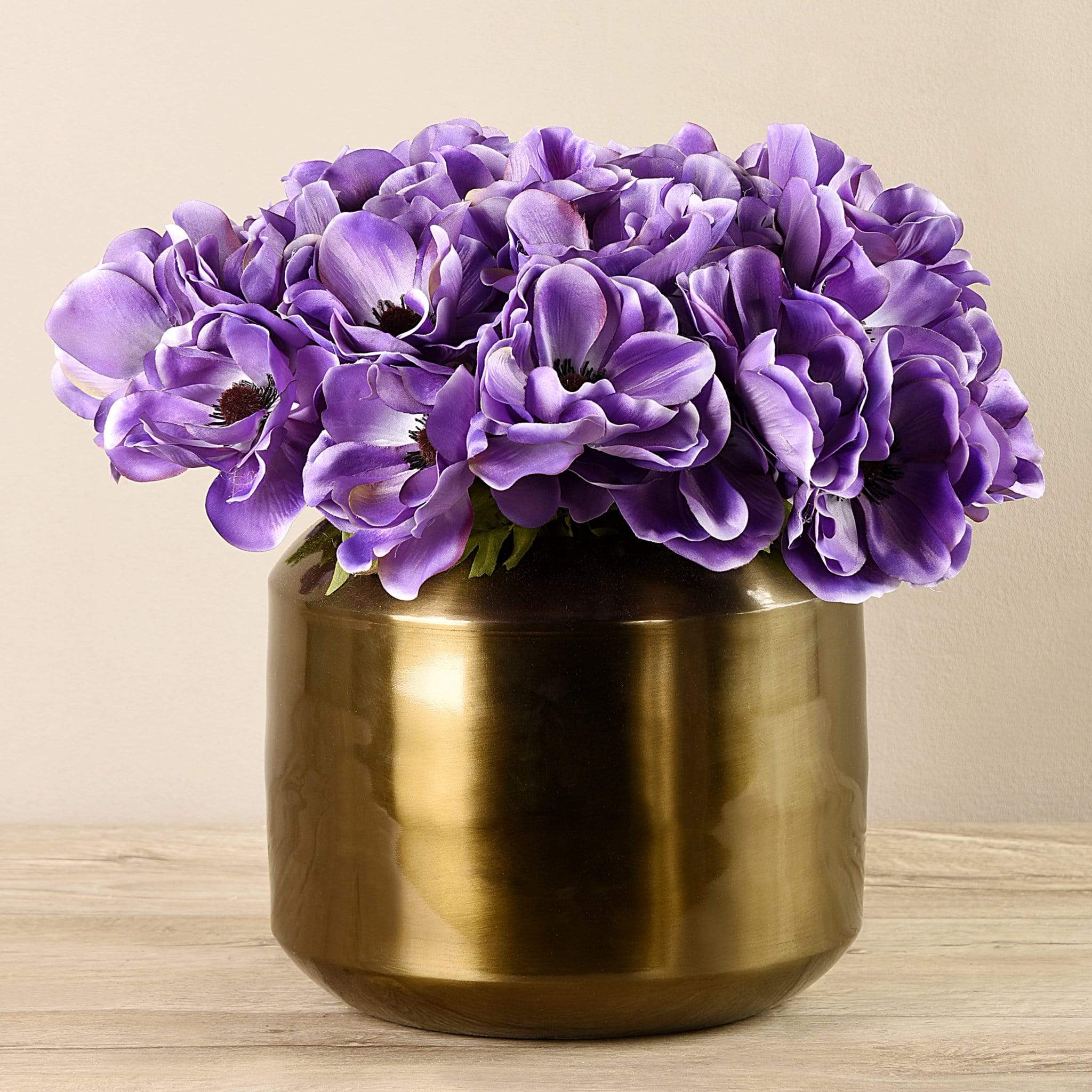 زهور شقائق النعمان الصناعية في مزهرية نحاسية