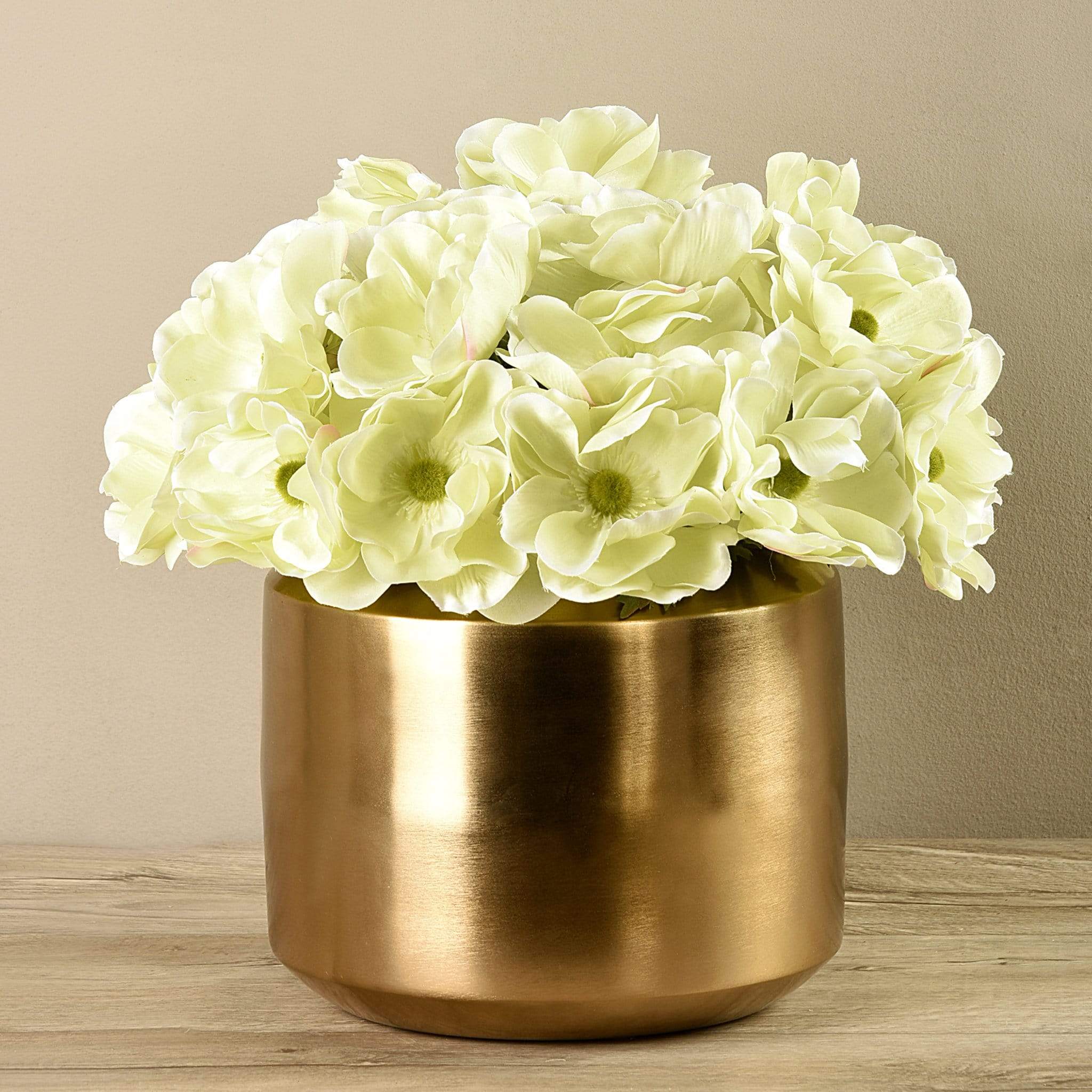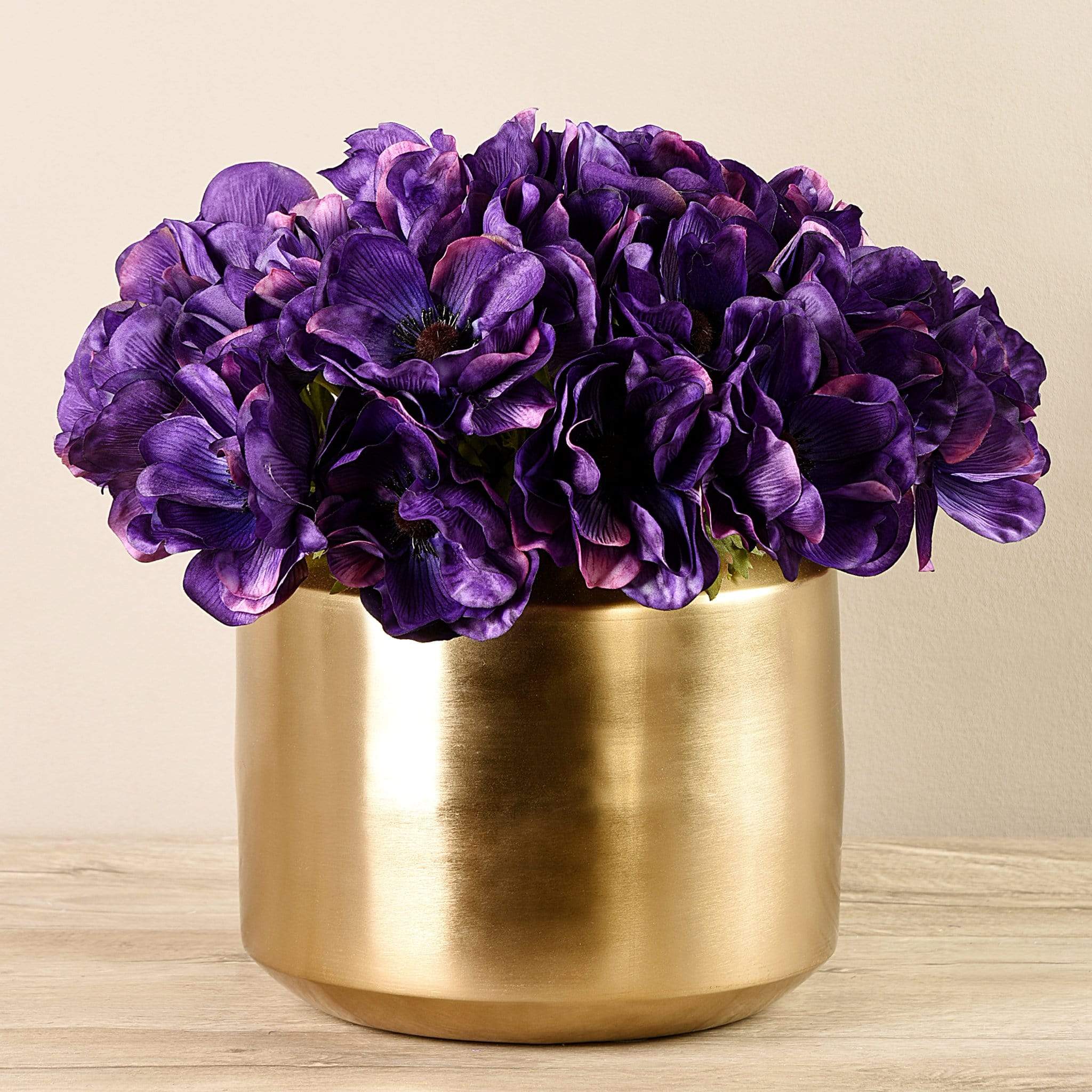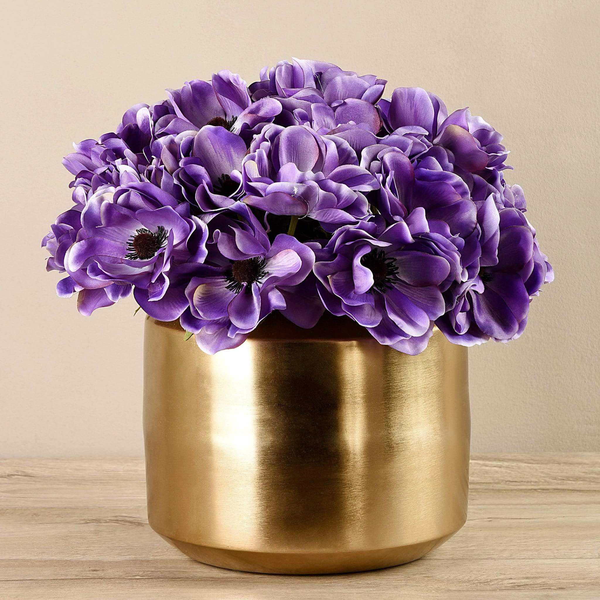 زهور شقائق النعمان الصناعية في مزهرية ذهبية