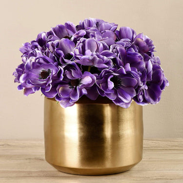 هذه الباقة من زهور شقائق النعمان الرقيقة لن تذبل أو تفقد سحرها أبدًا. الباقة مصنعة على أيدي منسقي زهور متخصصين، لتتمتع بمظهر وملمس مماثلين للزهور الطبيعية. وهي تأتيك منسقة داخل أصيص ذهبي أنيق يمنحها بريقًا فاخرًا.