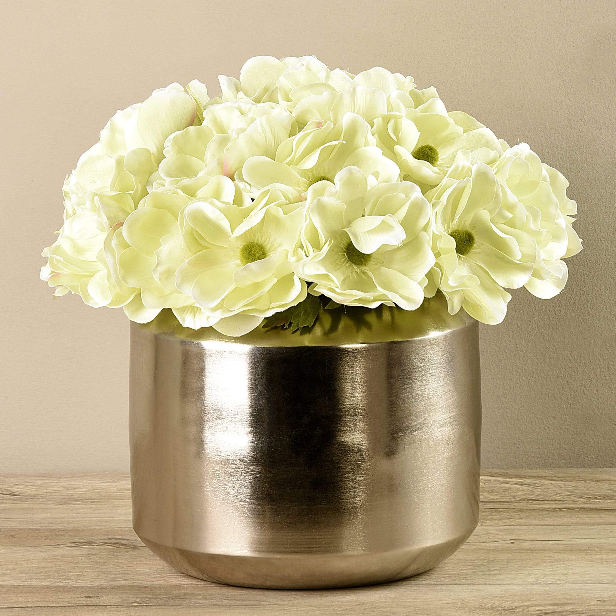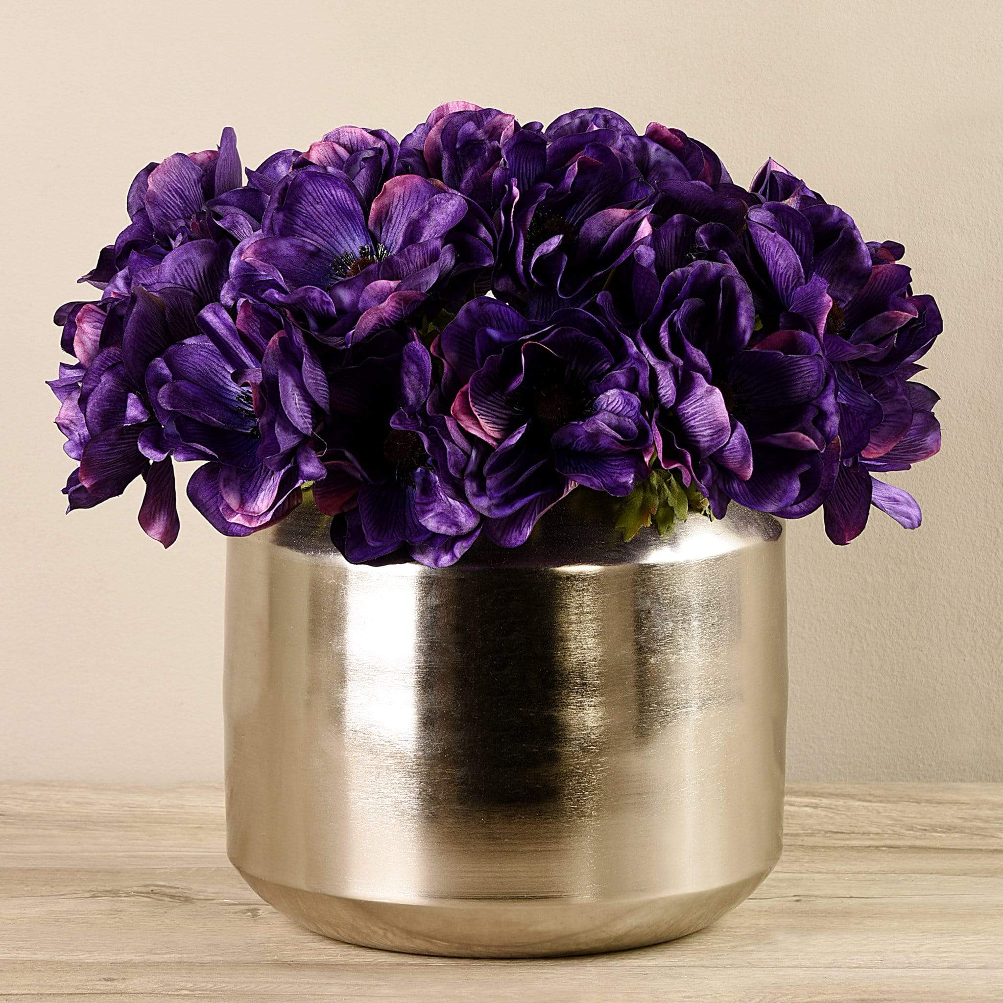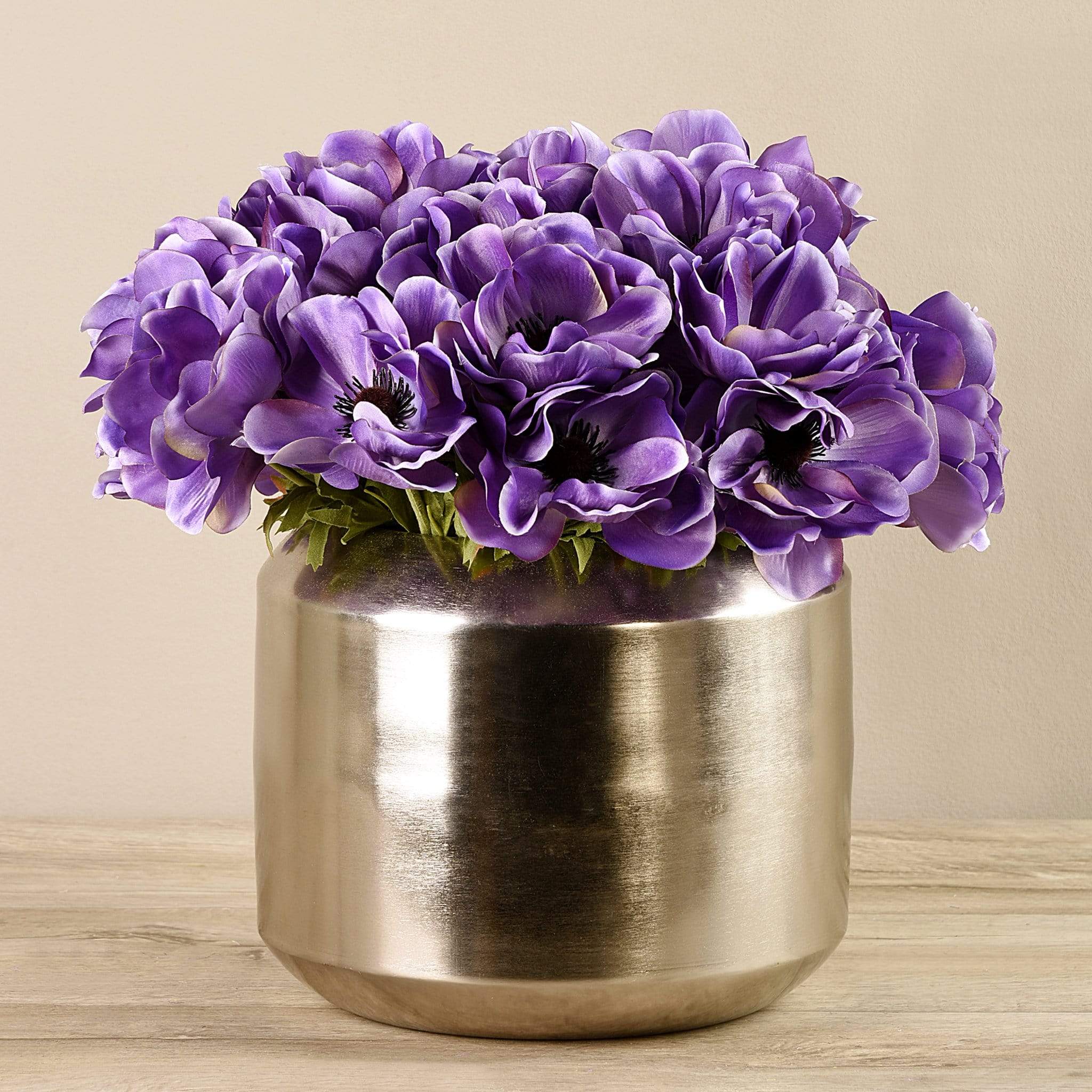زهور شقائق النعمان الصناعية في مزهرية فضية