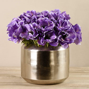 هذه الباقة من زهور شقائق النعمان الرقيقة لن تذبل أو تفقد سحرها أبدًا. الباقة مصنعة على أيدي منسقي زهور متخصصين، لتتمتع بمظهر وملمس مماثلين للزهور الطبيعية. وهي تأتيك منسقة داخل أصيص فضي أنيق يزيد من تألقها.