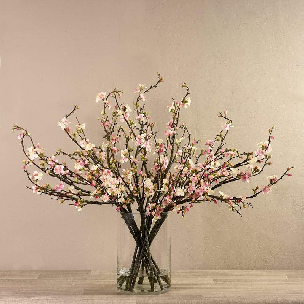باقة فروع أشجار مزهرة صناعية في مزهرية زجاجية