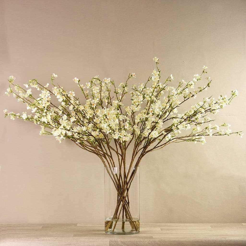 فروع أشجار مزهرة صناعية في مزهرية زجاجية