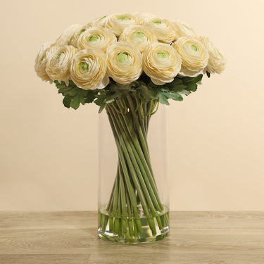 رمز للجاذبية والسحر، يضيف هذا التنسيق الرائع من زهور الحوذان لمسة من البهجة إلى أي مساحة معيشة. تبدو هذه الزهور الصناعية واقعية بشكل مذهل، من بتلاتها الحريرية إلى سيقانها الخضراء الفاتحة. تتميز مزهريتها الزجاجية الدائرية بتصميم جميل وأنيق لا يحده زمن.