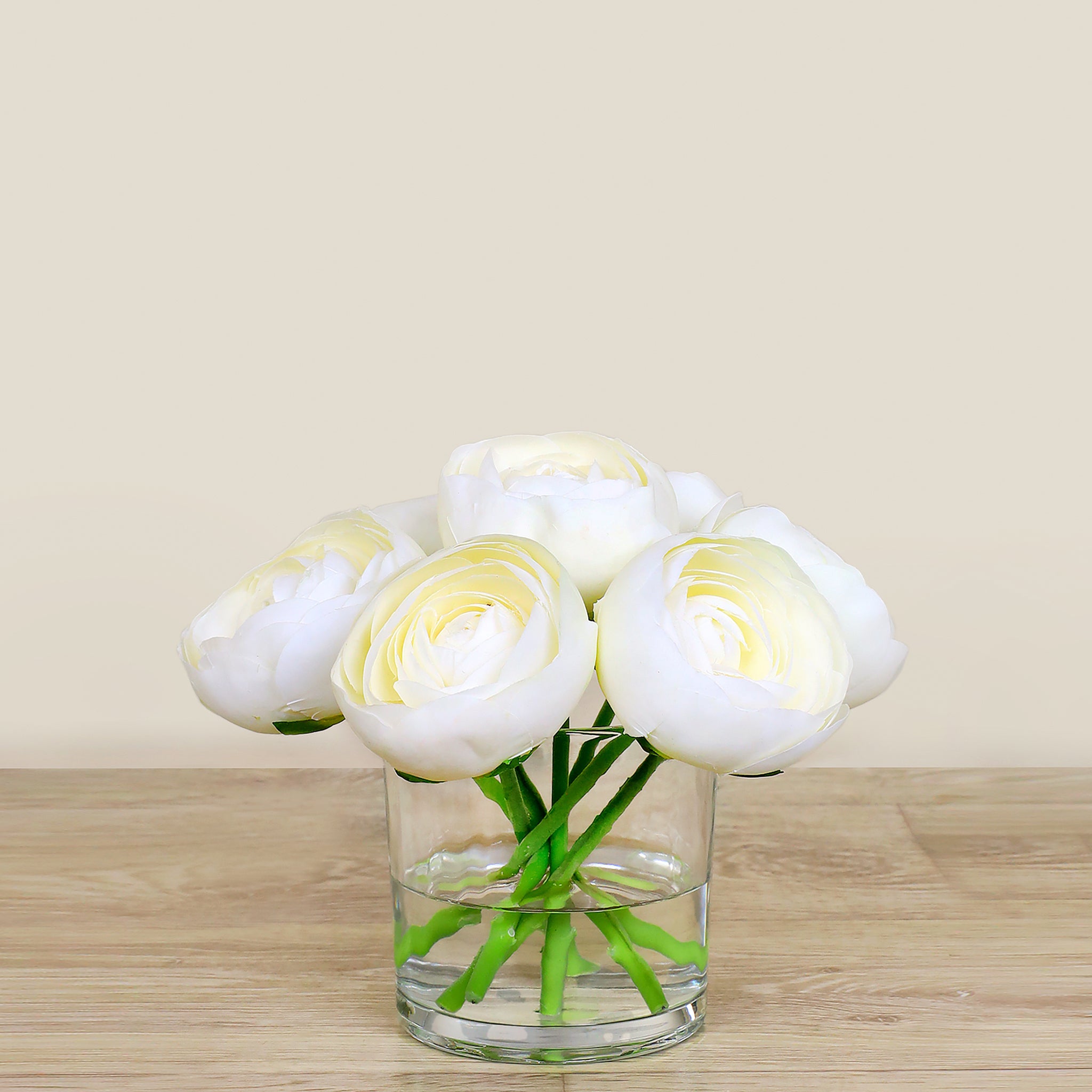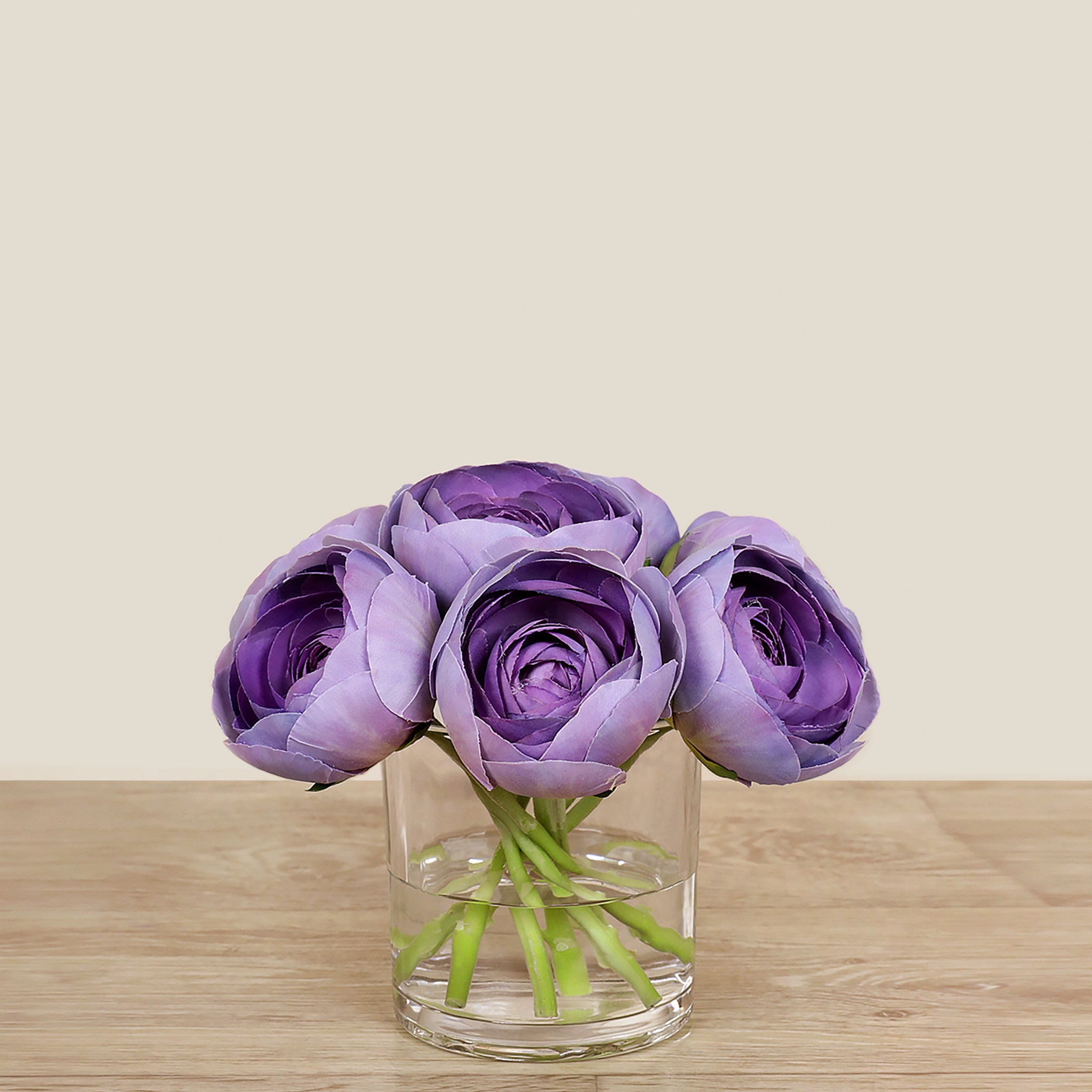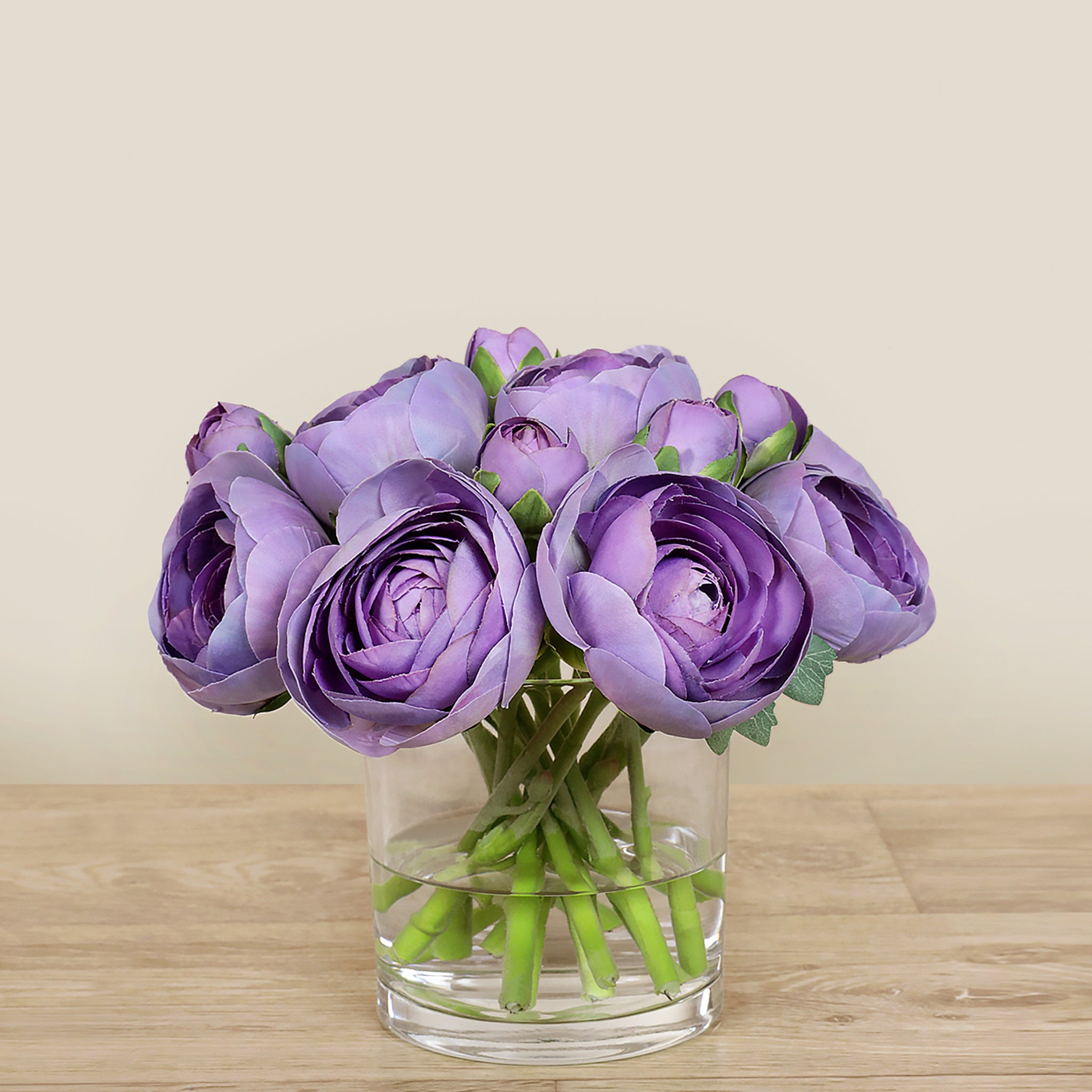 تنسيق زهور الحوذان الصناعية في مزهرية زجاجية