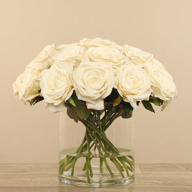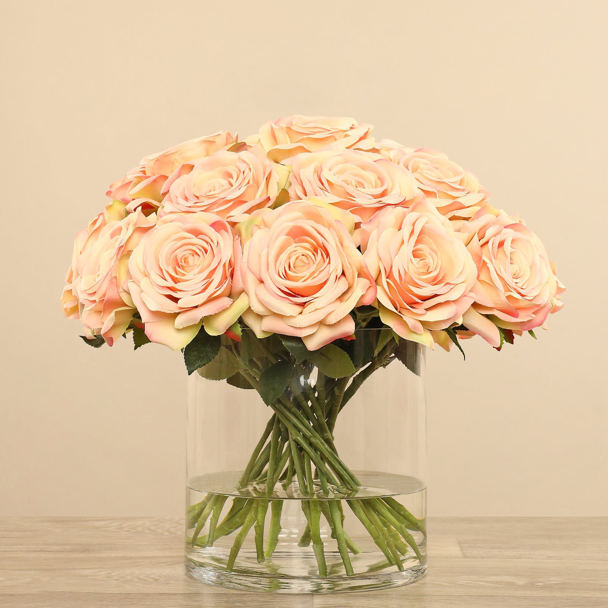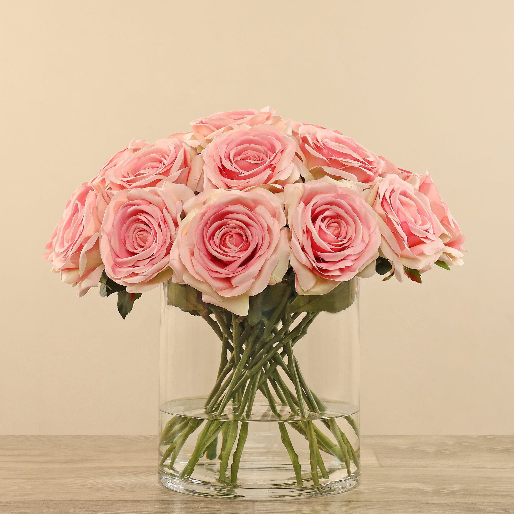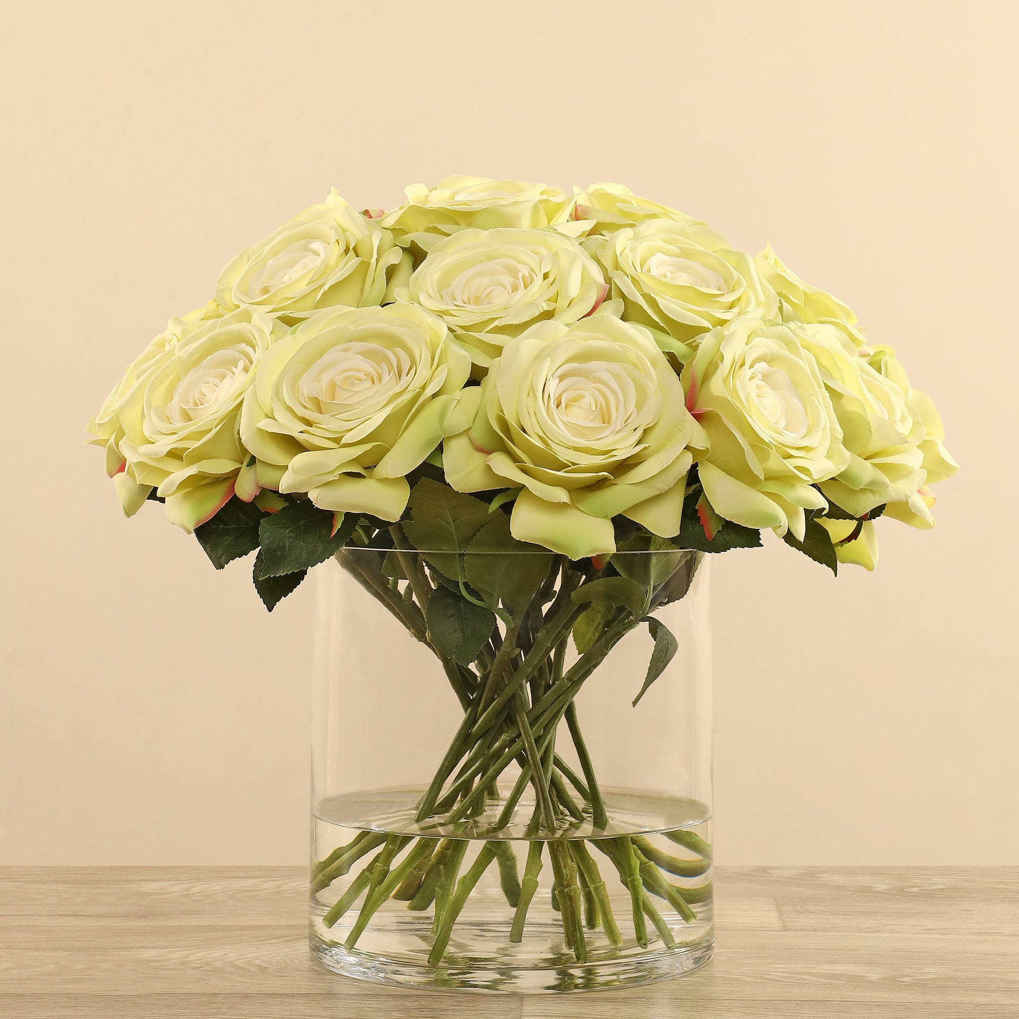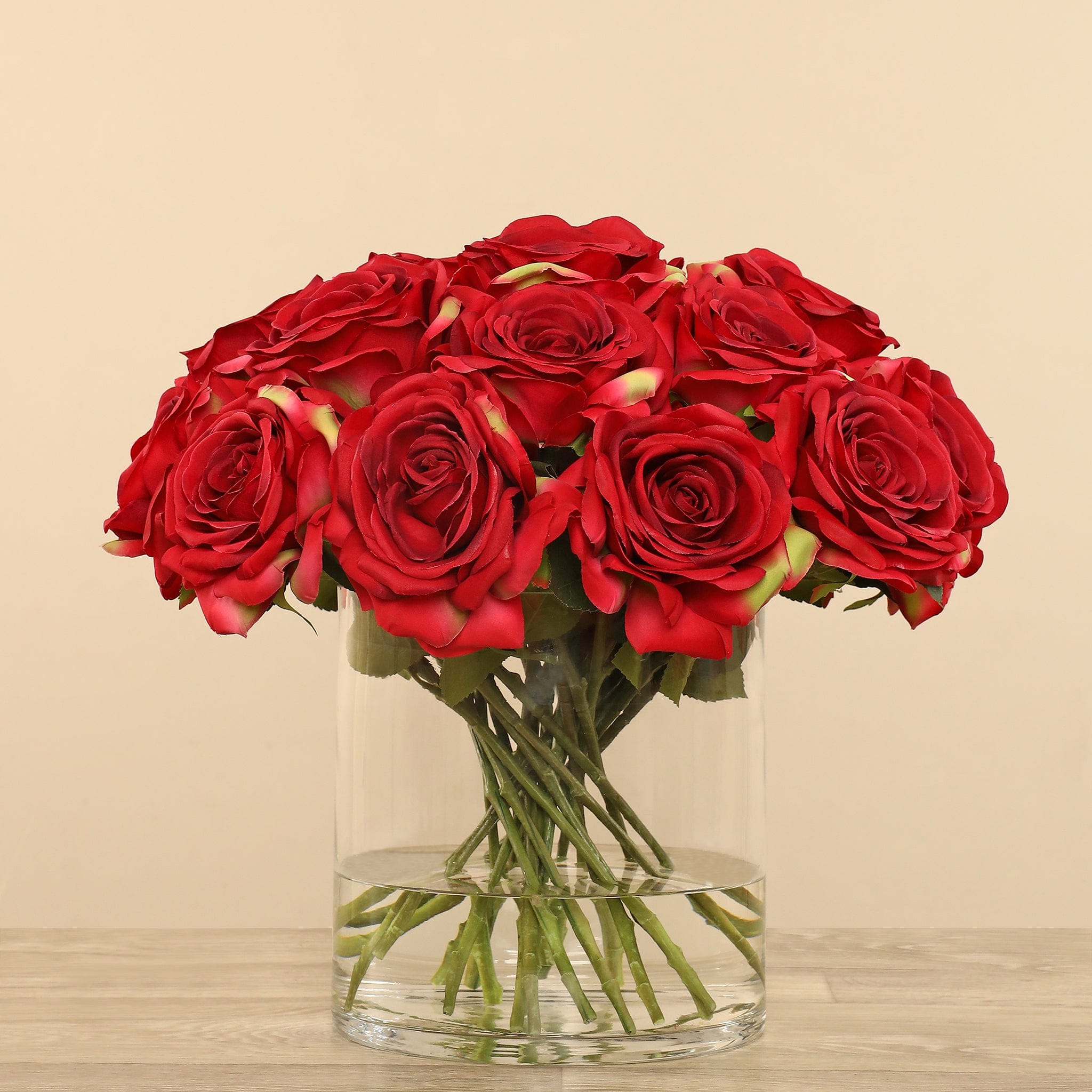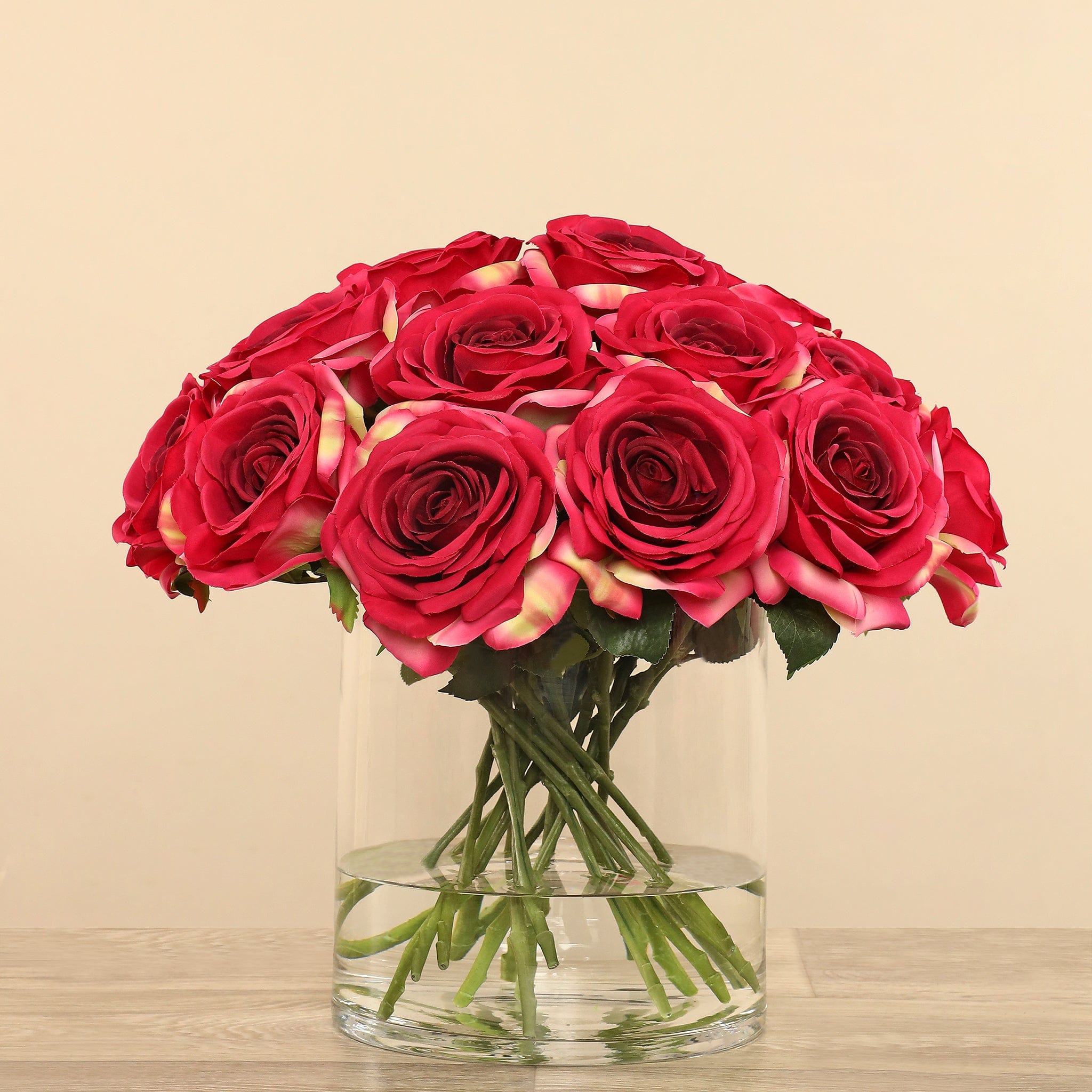 تنسيق صناعي من الورد في مزهرية زجاجية