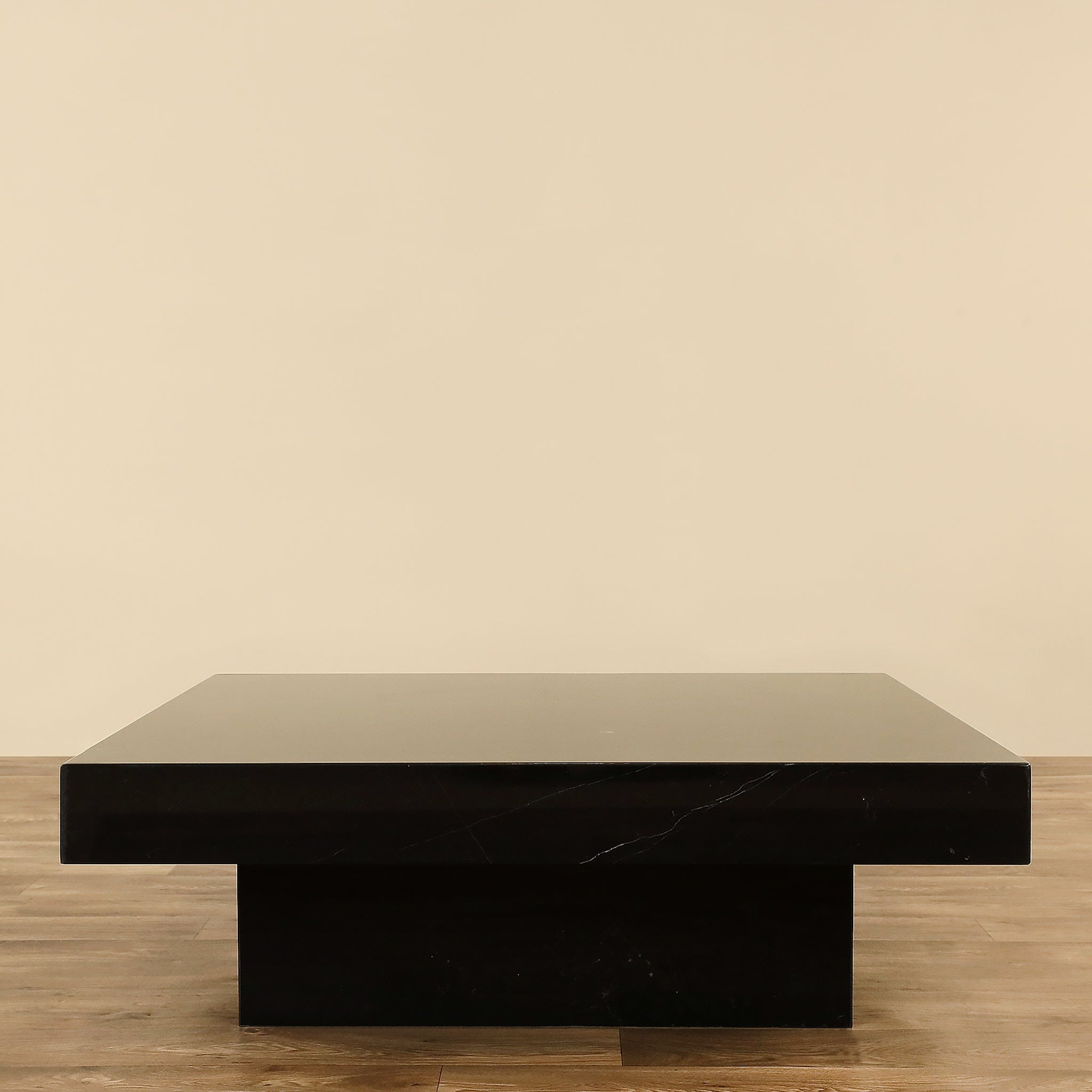 صنعت طاولة القهوة من الرخام الصلب بتصميم جريء ومبطن ممايضفي مظهرا عالي التباين . مثالية لمنطقة الجلوس ، توفر اتراني مساحة سطح واسعةوشكل صلب لحضور دراماتيكي.