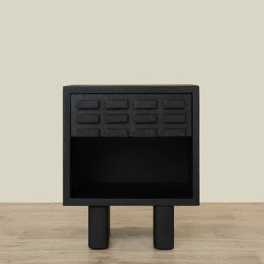ارتقِ بأناقة غرفة نومك مع طاولة السرير الجانبية باللون الأسود الأنيق.