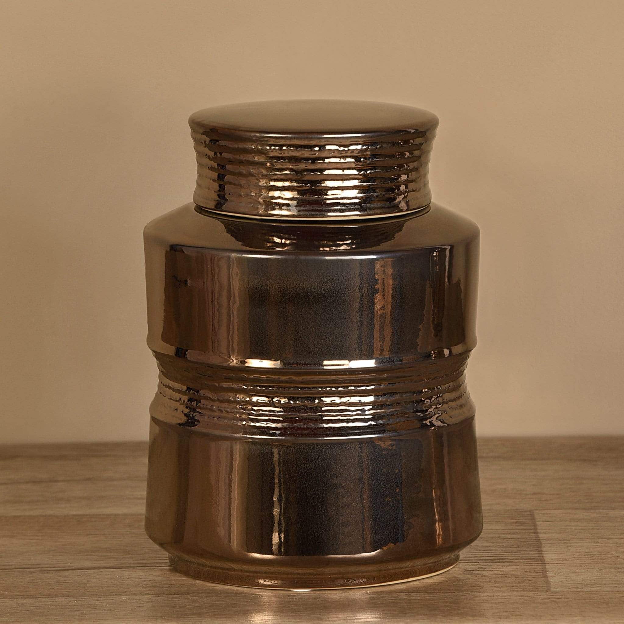 تتمتع هذه الجرة الجميلة بتوازن مثالي بين الأناقة والعصرية. تتميز بتصميم أنيق يلفت الأنظار. كما أن غطائها القابل للإزالة يجعلها عملية أيضًا. يمكن استخدامها لتخزين الأشياء الصغيرة أو ببساطة لإضفاء لمسة من اللمعان على أي سطح مطبخ.