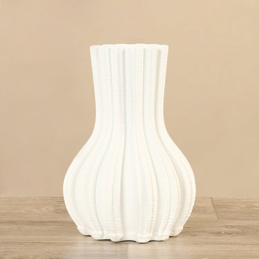 تمنح البساطة والأناقة هذه المزهرية الخزفية مظهرًا عصريًا وأنيقًا. صُنعت من السيراميك، وتتميز بتصميم مستطيل طويل يتسع ويلتوي، مما يضفي مظهرًا نظيفًا وبسيطًا. تم تصميم هذه المزهرية لتناسب بسهولة الرفوف أو الطاولات.