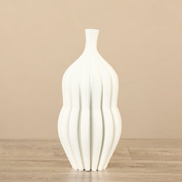 تمنح البساطة والأناقة هذه المزهرية الخزفية مظهرًا عصريًا وأنيقًا. صُنعت من السيراميك، وتتميز بتصميم مستطيل طويل يتسع ويلتوي، مما يضفي مظهرًا نظيفًا وبسيطًا. تم تصميم هذه المزهرية لتناسب بسهولة الرفوف أو الطاولات.