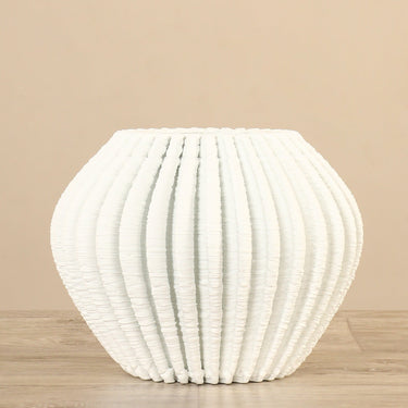 تمنح البساطة والأناقة هذه المزهرية الخزفية مظهرًا عصريًا وأنيقًا. صُنعت من السيراميك، وتتميز بتصميم مستطيل طويل يتسع ويلتوي، مما يضفي مظهرًا نظيفًا وبسيطًا. تم تصميم هذه المزهرية لتناسب بسهولة الرفوف أو الطاولات.