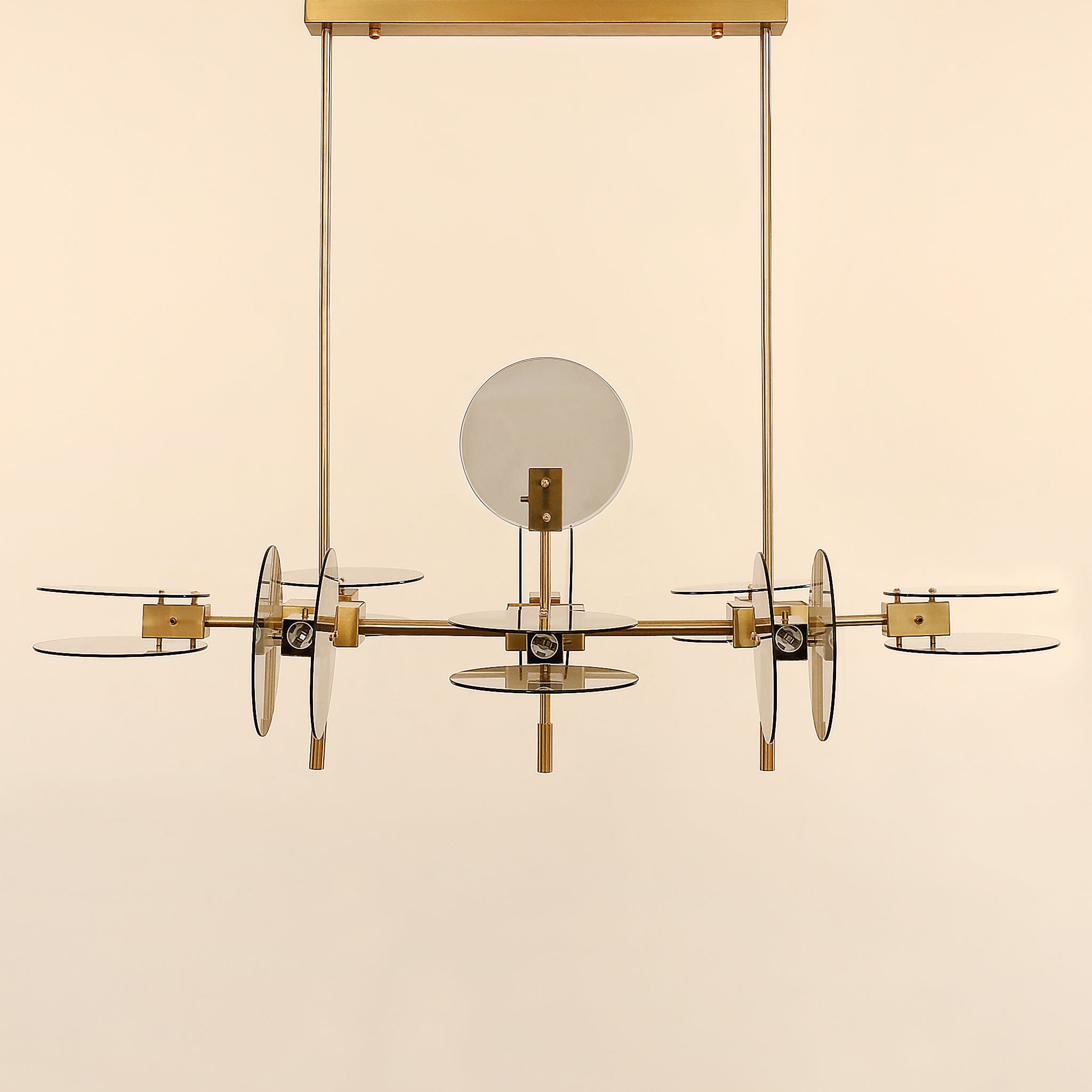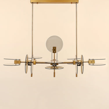 تتميز بأقراص زجاجية شفافة تعمل على توزيع وانكسار الضوء بشكل جميل، مع تشطيب ذهبي لامع يضيف طبقة إضافية من الأناقة والرقي.