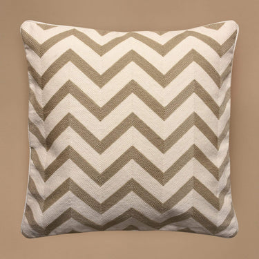 أضف الاهتمام إلى غرفة الجلوس الخاصة بك مع هذه الوسادة المربعة المزخرفة. بها نمط الشيفرون البيج والأبيض ، و سحابة مغطاة قوية، ونسيج قطني ناعم 100٪ سيشكل إضافة جميلة إلى أريكتك.