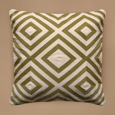 أضف الاهتمام إلى غرفة الجلوس الخاصة بك معهذه الوسادة المربعة المزخرفة. بها نمط الماس الاخضر والأبيض ، و سحابة مغطاة قوية، ونسيج قطني ناعم 100٪ سيشكل إضافة جميلة إلى أريكتك.