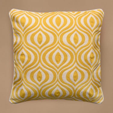 أضف لمسة عصرية إلى غرفة المعيشة الخاصة بك مع هذه الوسادة المربعة المزخرفة. مزغرفة بالأبيض و الاصفر ، و سحاب مغطاة ، ونسيج قطني ناعم 100٪ سيشكل إضافة رائعة إلى أريكتك.