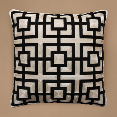 أضف لمسة أنيقة إلى أي غرفة جلوس مع هذه الوسادة ذات اللمسات المربعة. إن بها نمط شبكي مطرز باللون الكريمي والاسود، وسحاب مغطى قوي ، وملمس ناعم يجعلها إضافة مثالية إلى مقعدك الأسود.