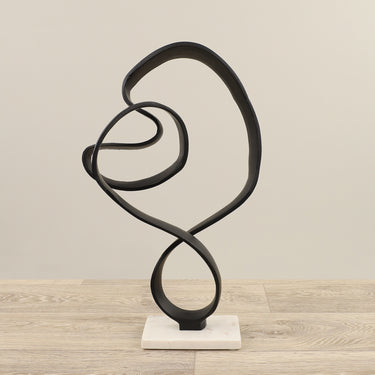 أضف لمسة فريدة إلى ديكورك مع هذا المجسم الشريطي الزخرفي. يتميز بتصميم عصري ولمسة نهائية باللون الأسود الغني، مما يجعله قطعة مثالية لتكاملها مع مختلف أنماط الديكور.