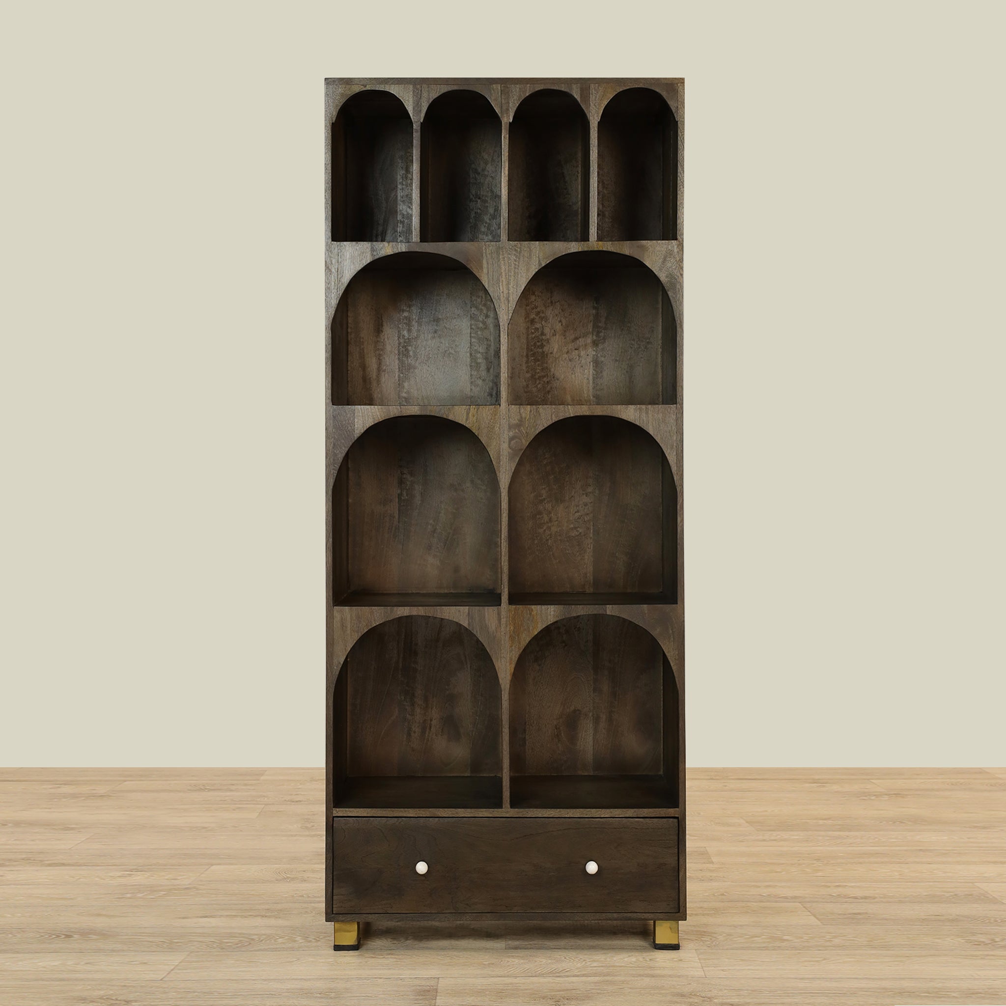 This elegant wooden arch design tall shelf serves as a refined display unit that elevates any living space.