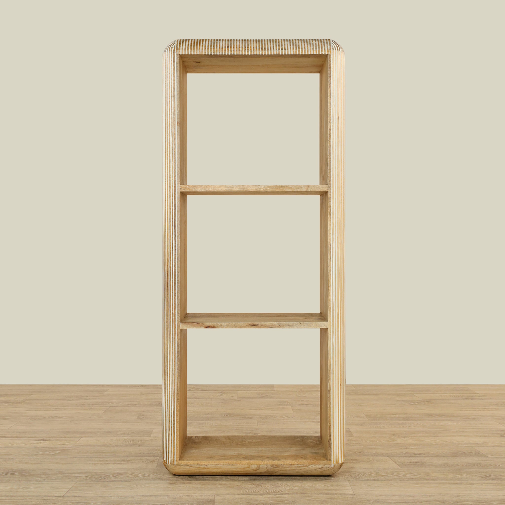 Material: Wooden Tall Shelf with Carved Lines