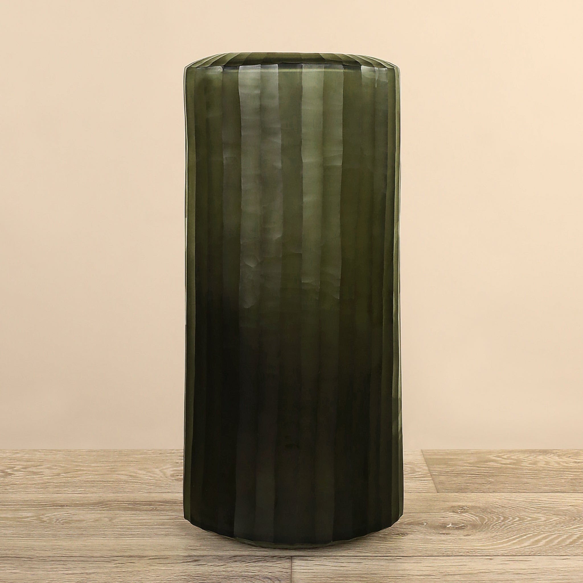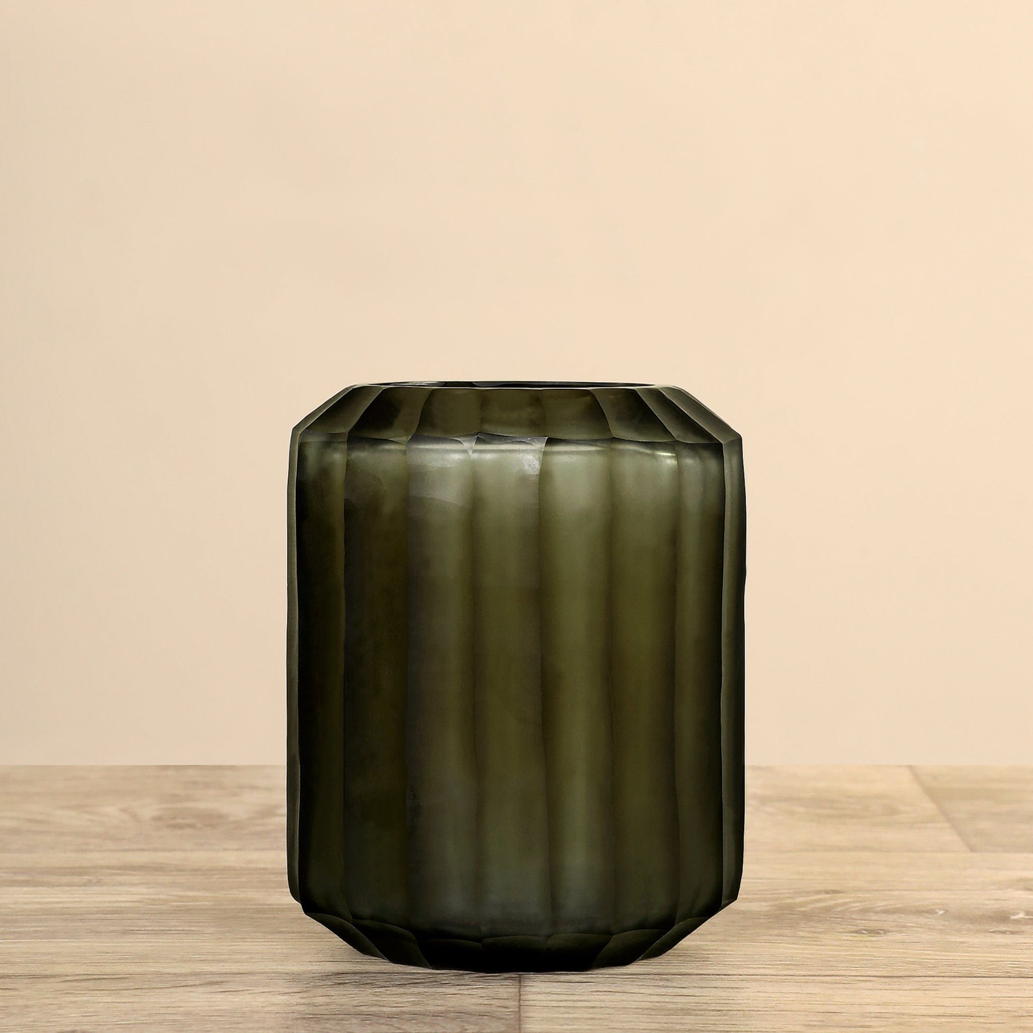 يتميز التصميم الأسطواني المضلّع لهذا الزجاج المنفوخ يدويًا ببساطته وأناقته العصرية، التي تزداد تألقًا بفضل درجات اللون الأخضر العشبي الداكن الساحرة التي تزين الزجاج.