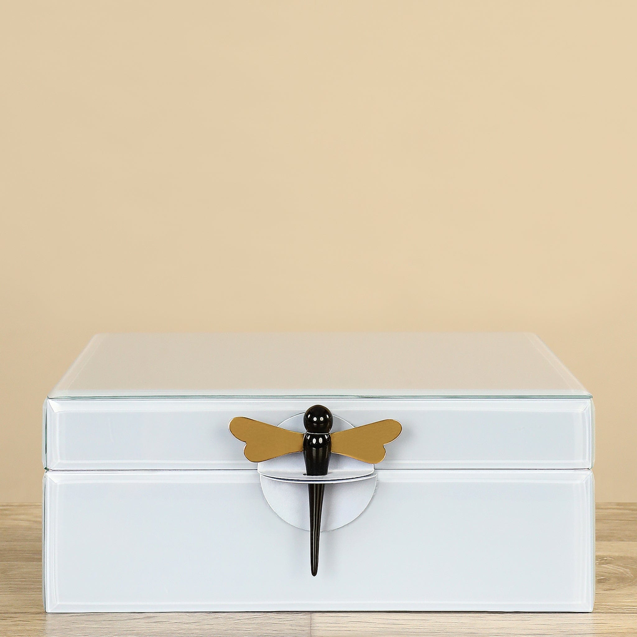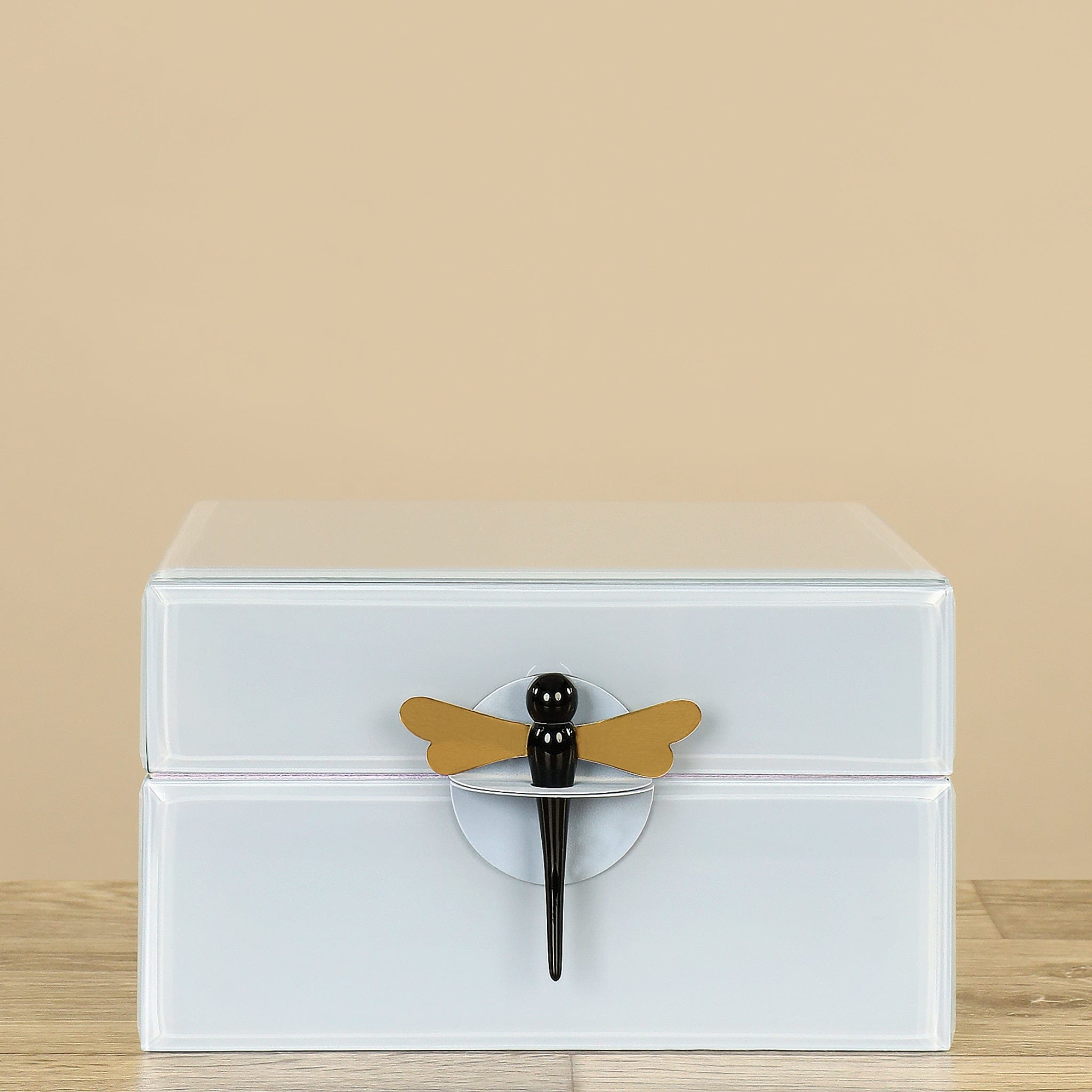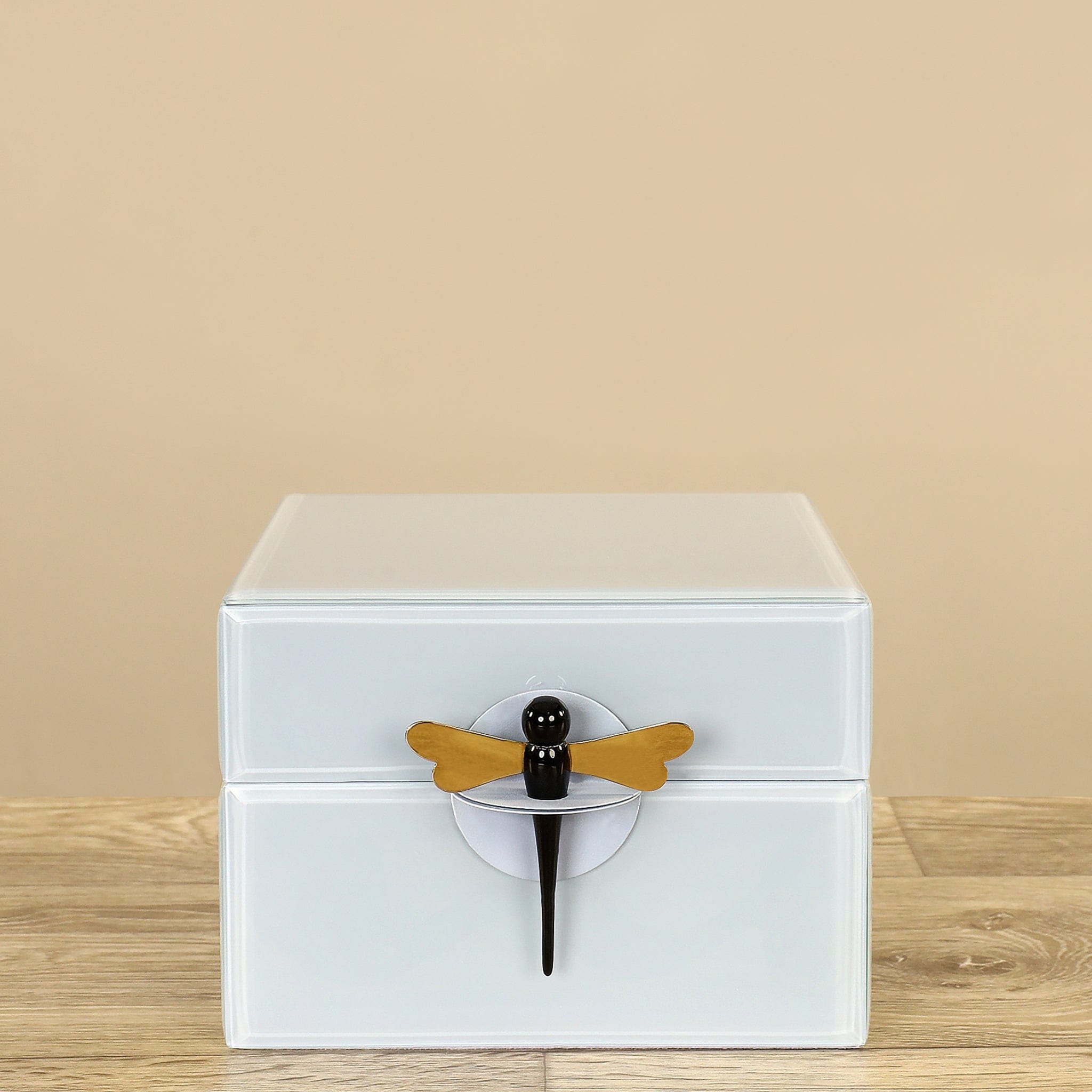 يتميز صندوق المجوهرات الأنيق هذا بلمسة نهائية لامعة باللون الأرجواني الفاتح، كما يتميز بمشبك على شكل يعسوب مميز يجعله مميزًا. بفضل حجمه المثالي لاستيعاب كل شيء من المجوهرات الثمينة إلى التذكارات العزيزة، من المؤكد أن هذا الصندوق الأنيق سيضيف جاذبية إلى أي سطح.