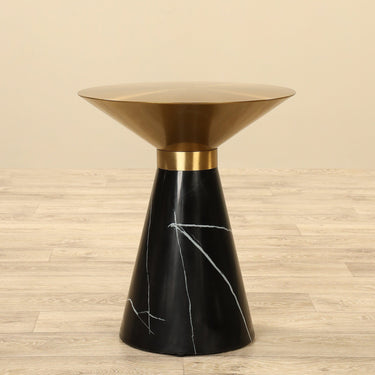 طاولة لوريل الجانبية تتميز بتصميم عصري وفاخر، حيث يتربع سطح ذهبي كرومي فاخر على قاعدة مخروطية أنيقة. مثالية لوضعها بجانب الأريكة أو الكرسي، تُعد هذه الطاولة العصرية قطعة مثالية لإكمال منطقة الجلوس أو مساحة النقاش.