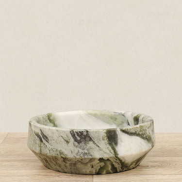 مصنوع من الأونيكس اللامع المزخرف بالعروق الرائعة، هذا الوعاء سيجذب الأنظار بالتأكيد. حرفيته الأنيقة وحجمه الكبير يجعلاه الخيار المثالي لعرض أو حمل العناصر الزخرفية برقي.