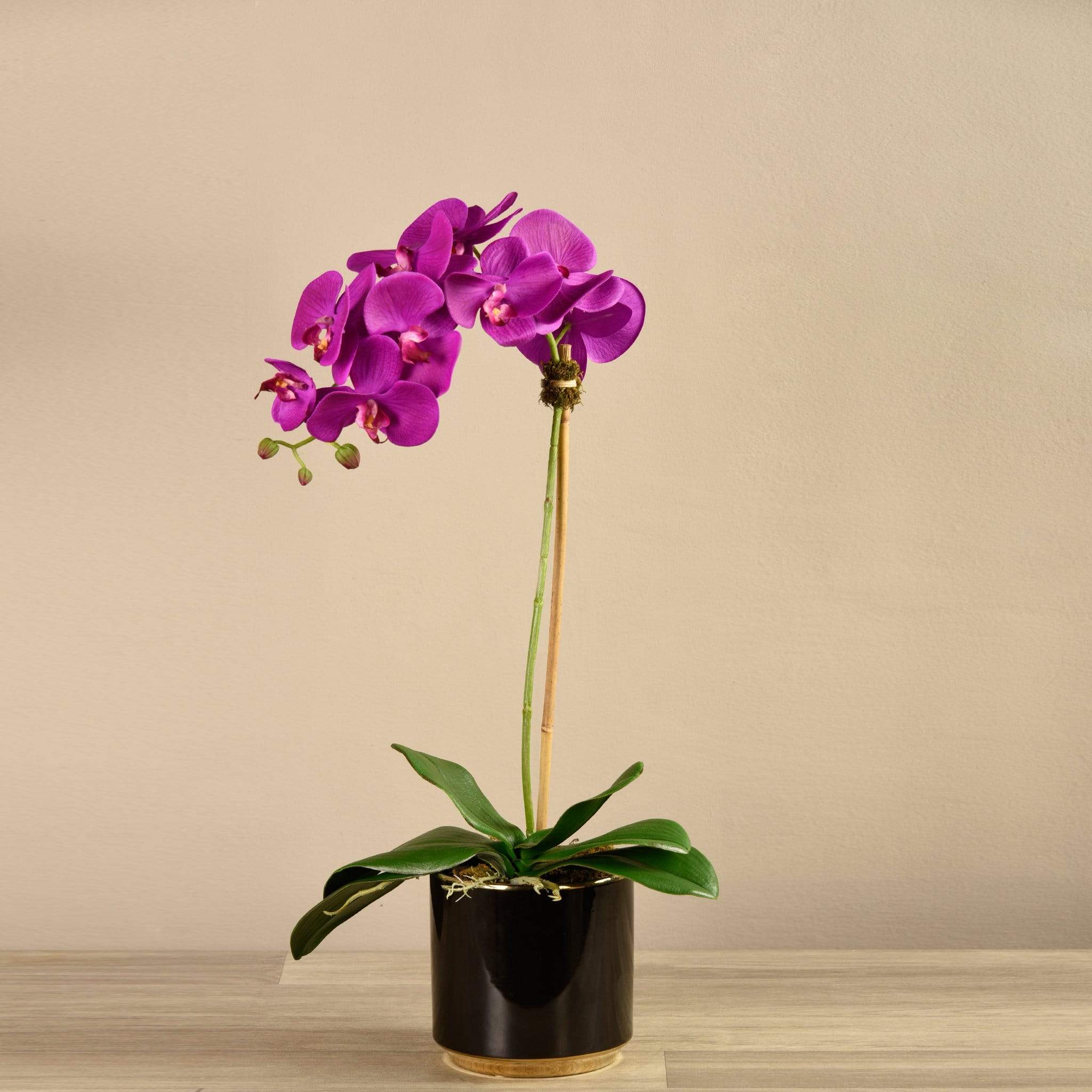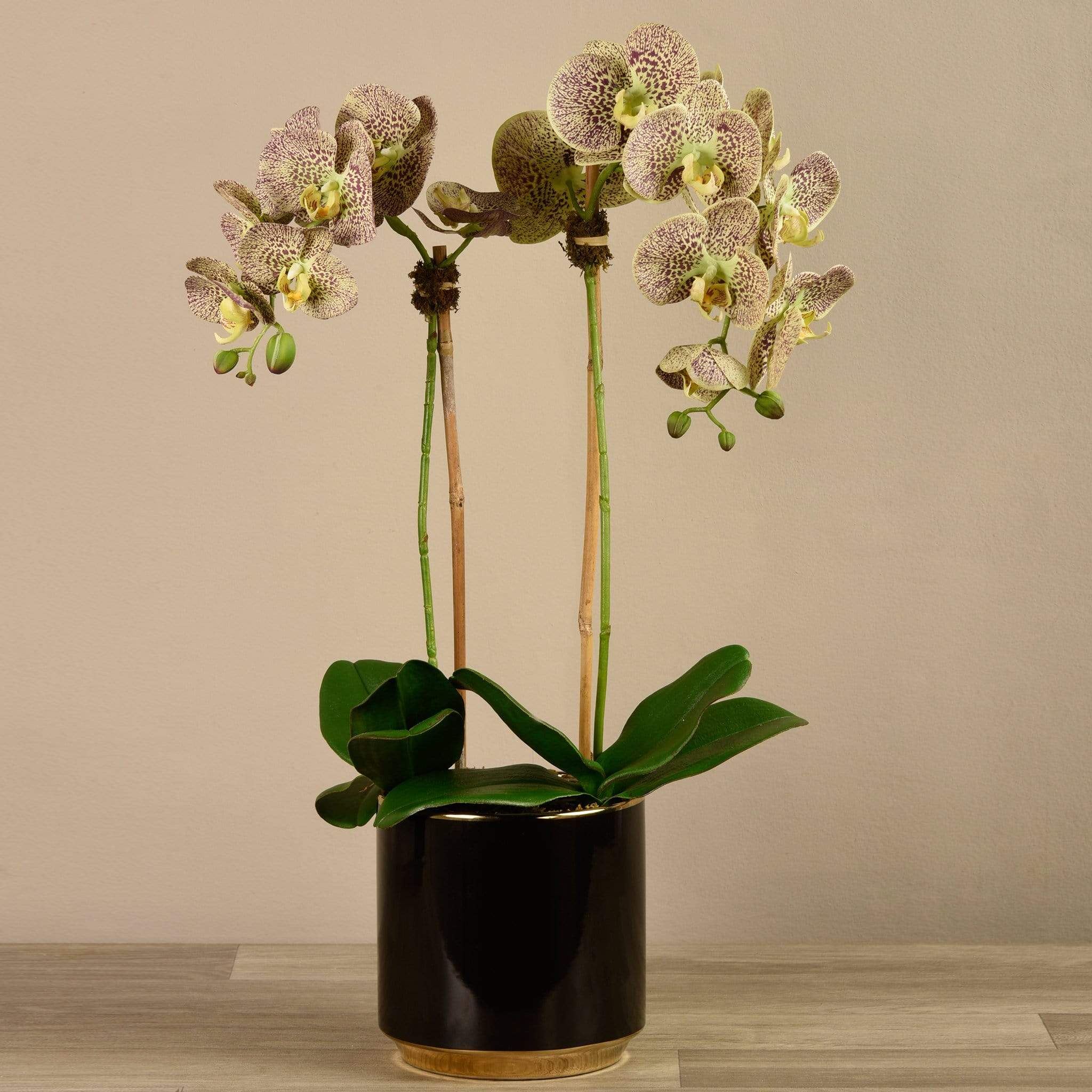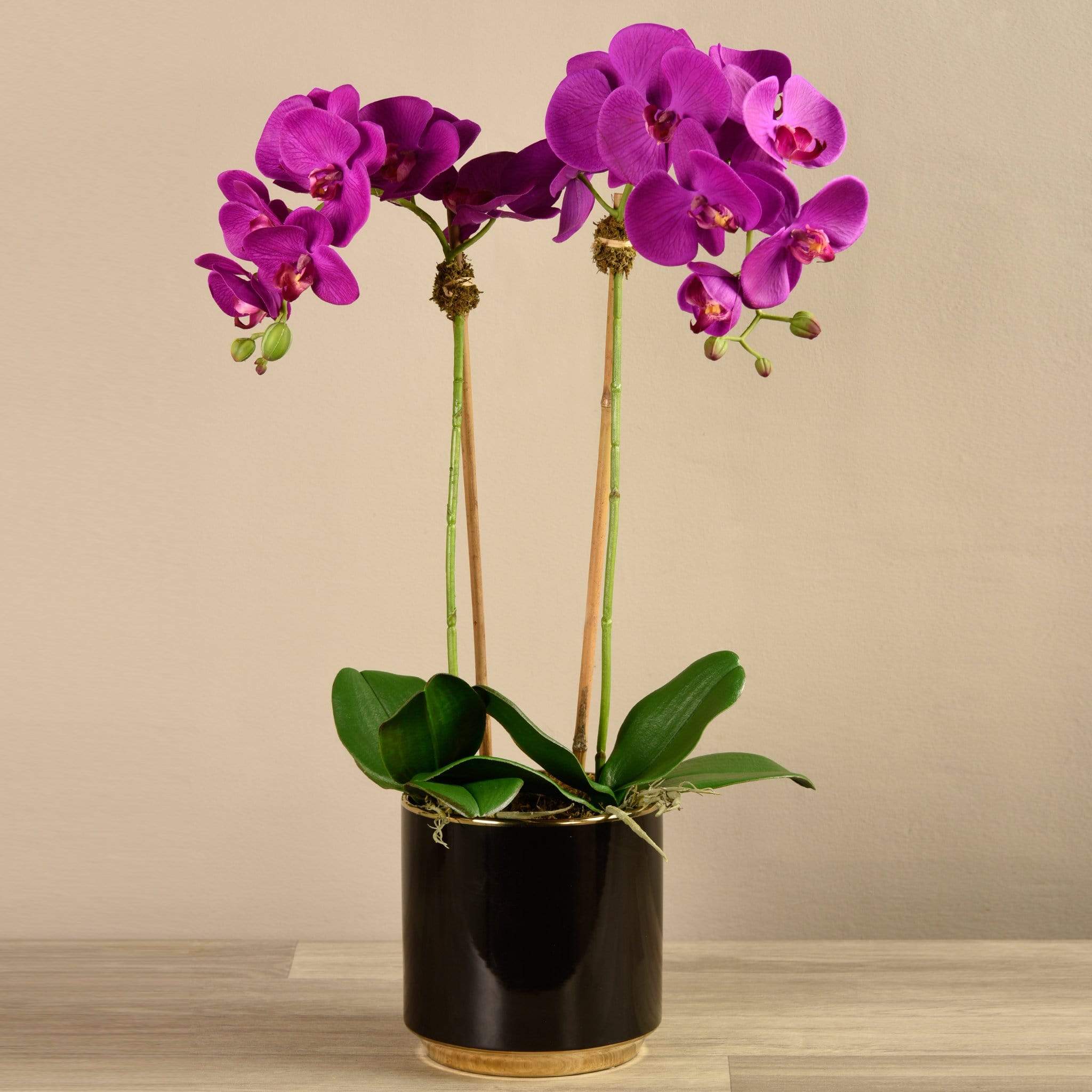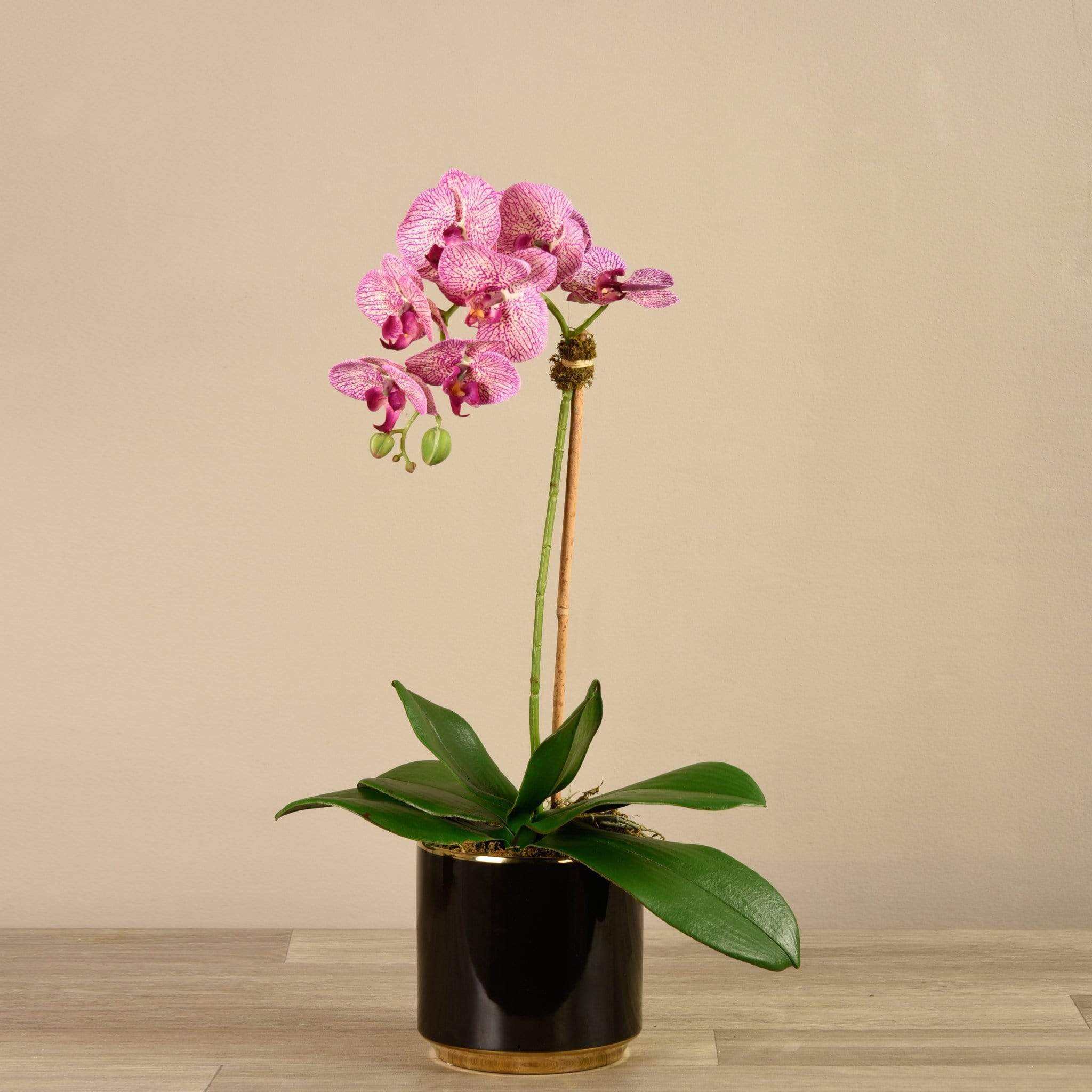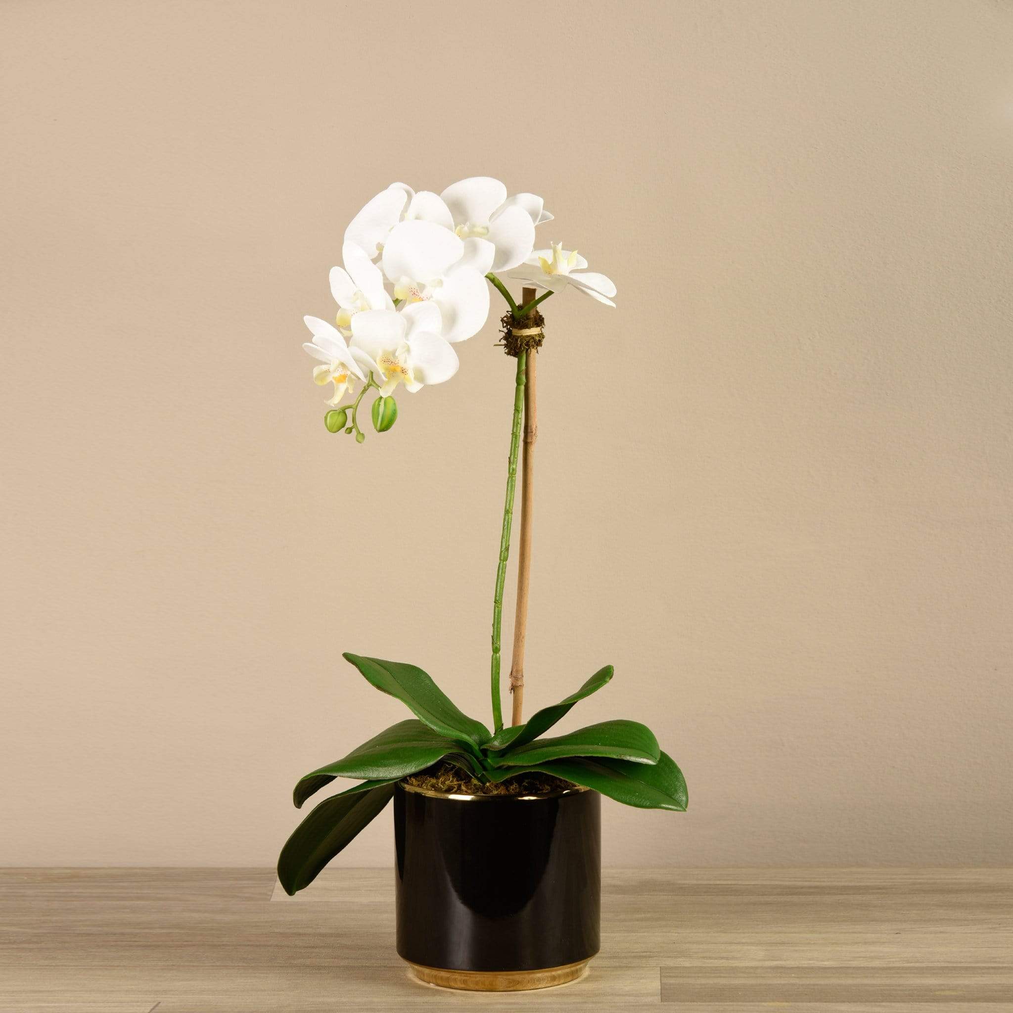 زهور الأوركيد الحريرية النابضة بالحياة والمزودة بوعاء أسود لامع مزين بالذهب تجعل البيان تمامًا في أي غرفة معيشة أو منطقة انتظار. الترتيب حجم المزهرية الحجم الارتفاع الارتفاع القطر صغير 65 سم / 25.6 بوصة 14.5 سم / 5.71 بوصة 14.5 سم / 5.71 بوصة كبير 70 سم / 27.55 بوصة 16 سم / 6.3 بوصة 16 سم / 6.3 بوصة