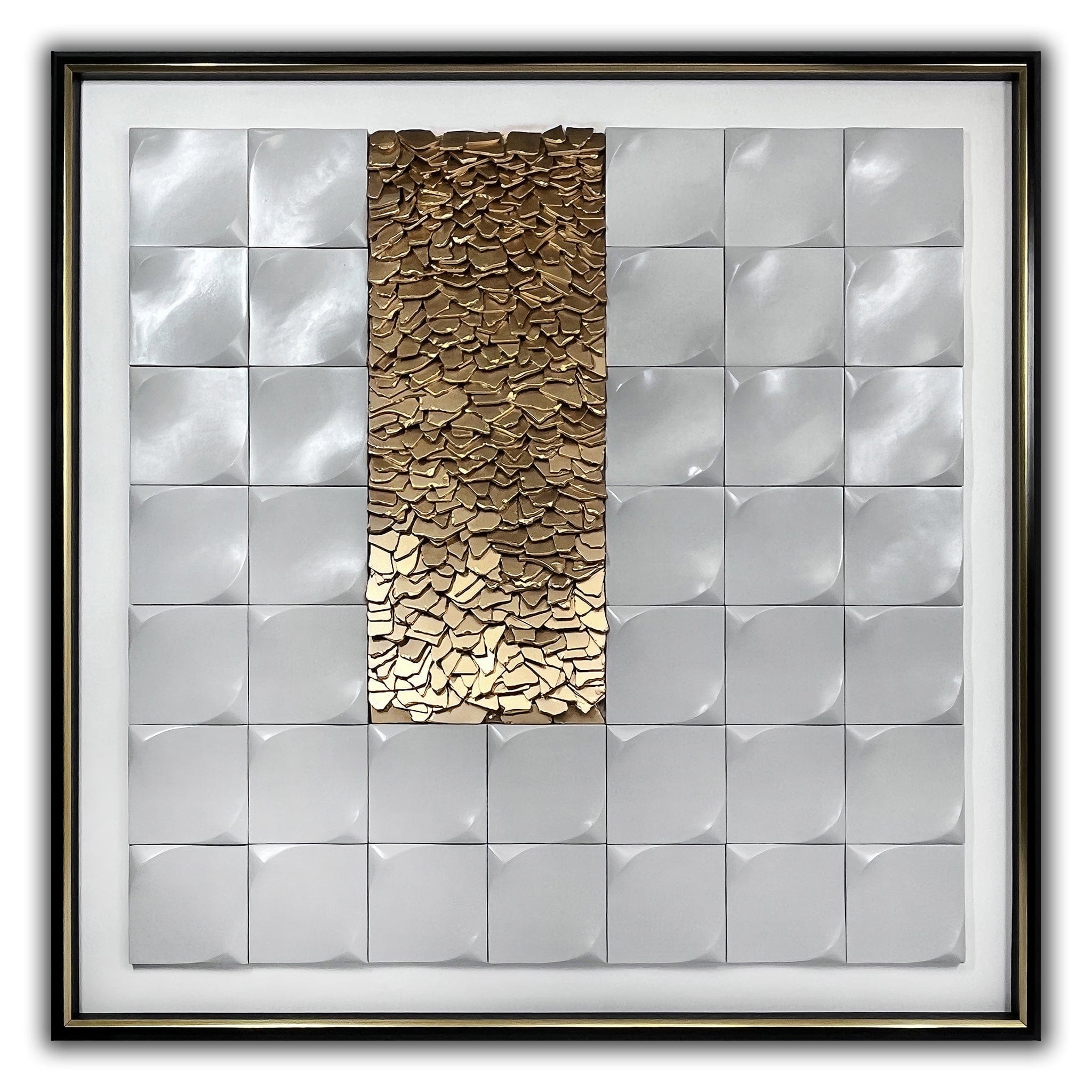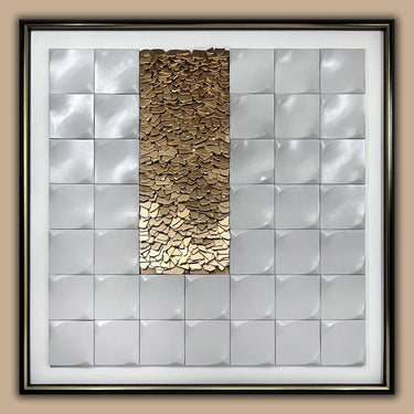 ارتقِ بذوقك الفني مع هذه اللوحة المؤطرة بالأسود والذهبي. ينبض التكوين بالحياة من خلال النقش الخشبي، ونمذجة الزجاج البحري، والطلاء، والقاعدة القماشية، ليخلق تأثيرًا بصريًا ديناميكيًا يتحول إلى عمل فني عصري يخطف الأنظار بعمقه وتكوينه.