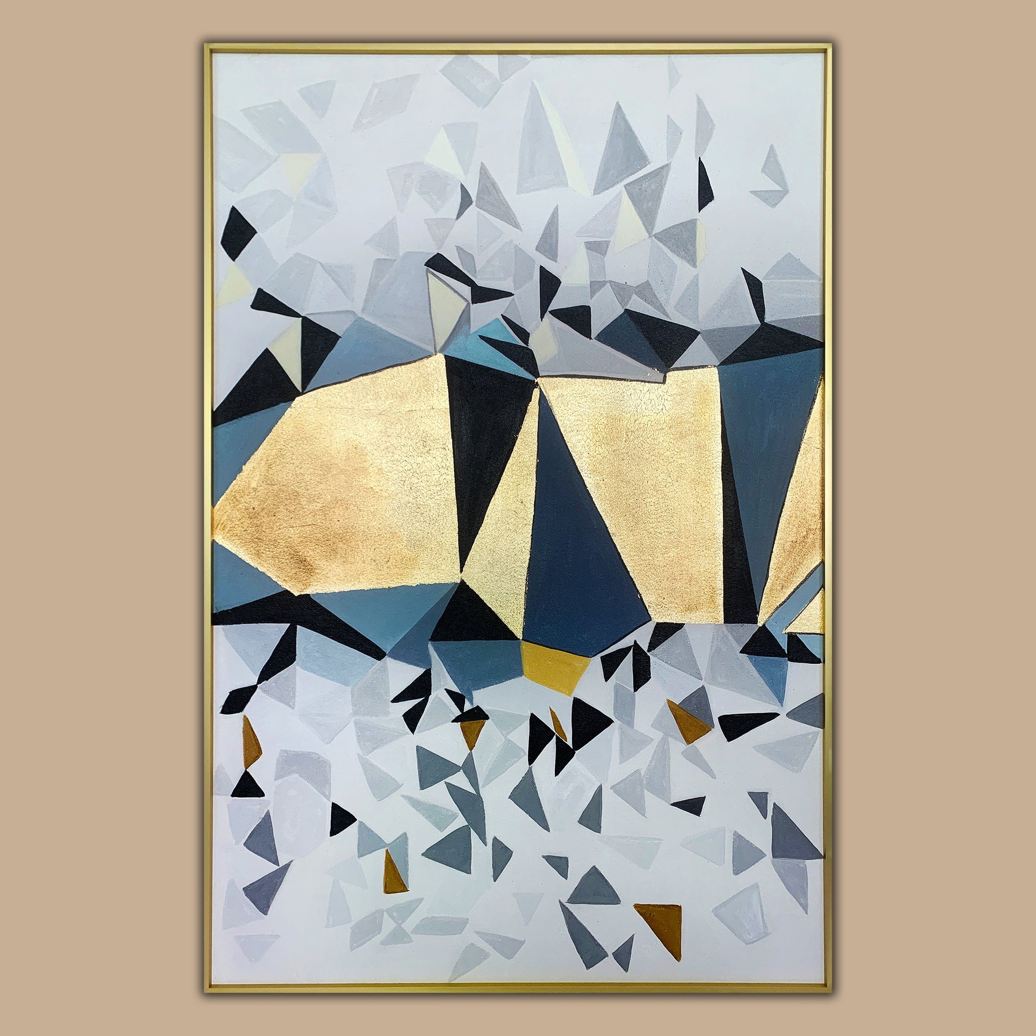 تمتاز هذه اللوحة الرائعة المصنوعة بالزيت بإطار أنيق بلون الشمبانيا، مما يضفي توازنًا جميلاً مع درجات الألوان في التكوين. يبرز الطابع العصري والمهارة في استخدام الألوان في هذه اللوحة الزيتية اليدوية الصنع، مما يجعلها إضافة مثالية لمختلف أنماط الديكور.