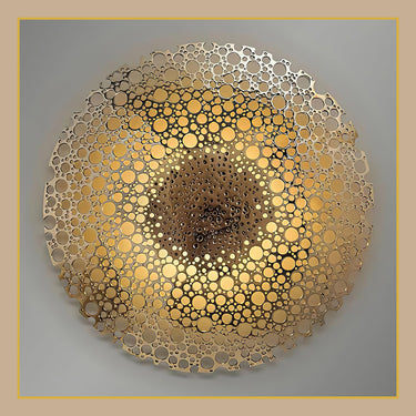 ينشئ اللون الذهبي اللامع أجواءً ساحرة في هذا العمل الفني المطبوع بتقنية UV اللافت. يجتمع التصميم المعاصر مع الدرجات المضيئة والعناصر المركبة بعناية ليصنع قطعة تجريدية مذهلة تكمل مجموعة متنوعة من أساليب الديكور الداخلي.
