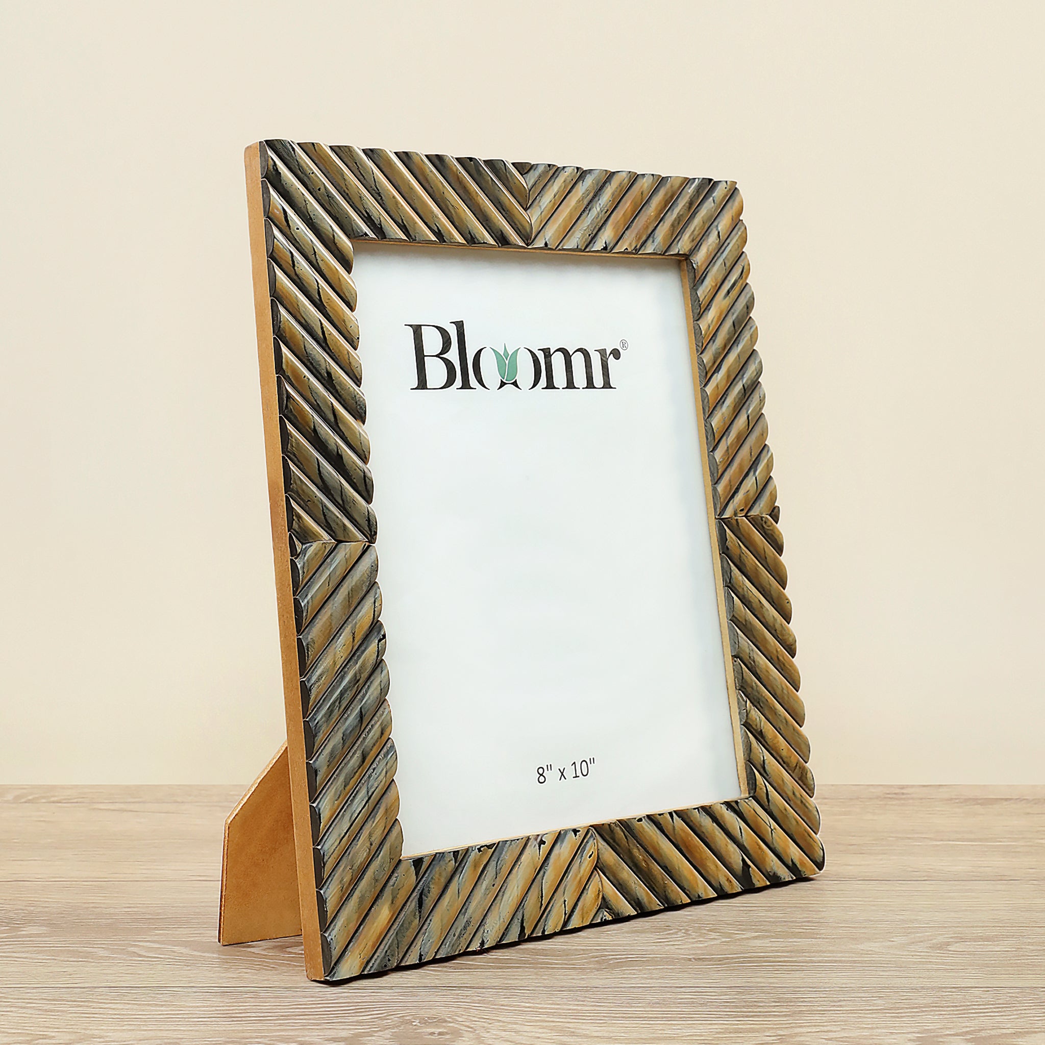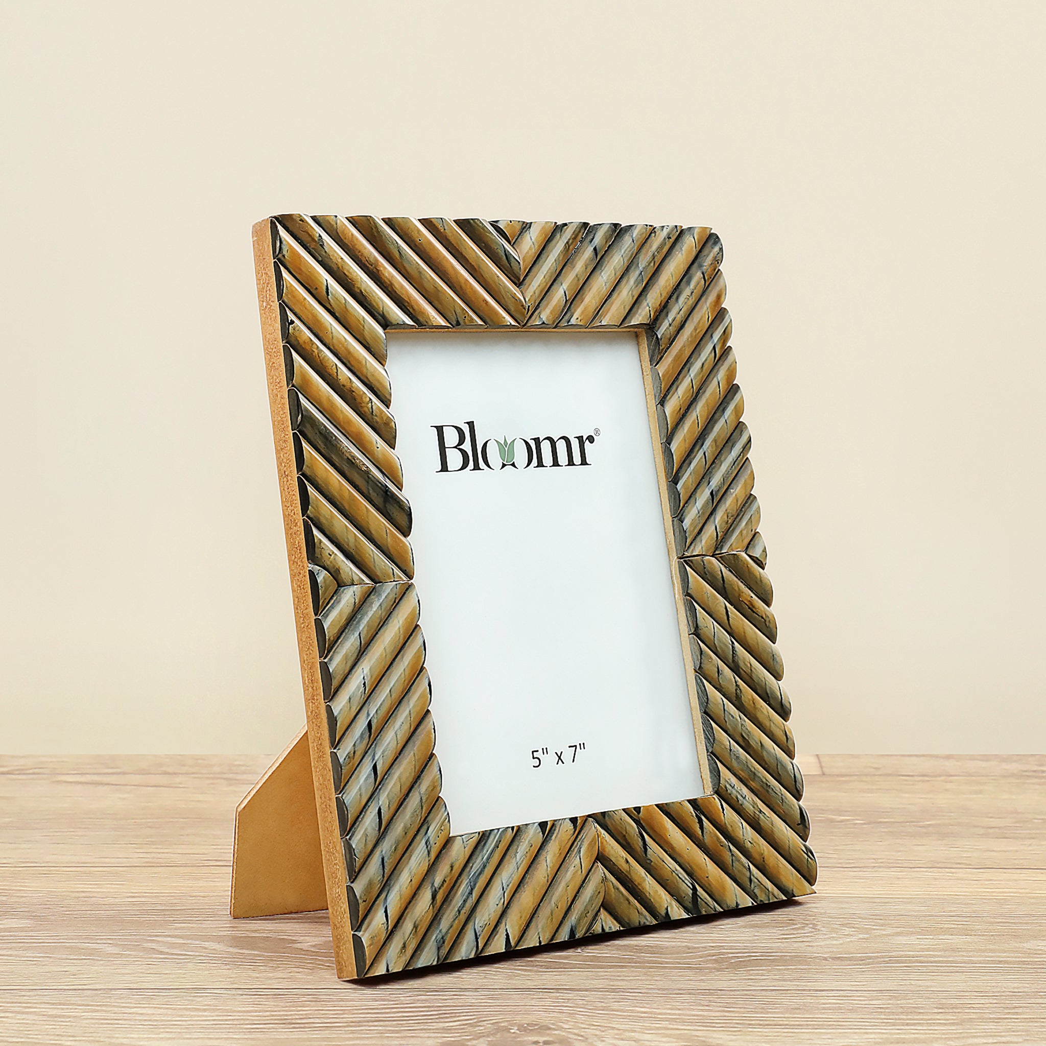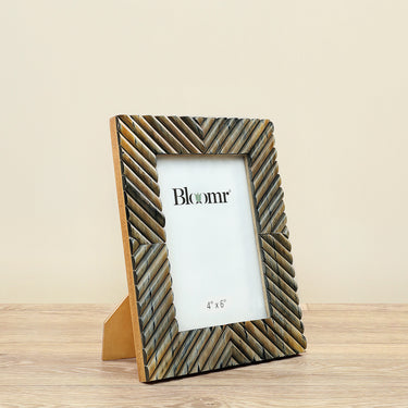Elevate the presentation of your cherished photos with this versatile frame. It seamlessly complements many decorating styles while providing a stunning backdrop for your photographs. Boasting an diagonal design in horn, this photo frame ensures a perfect showcase for your favorite memories, adding an elegant touch to any space.