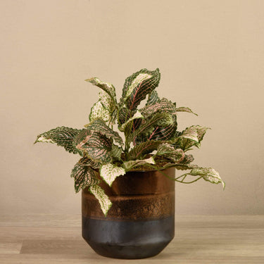 يضيف هذا النبات الصناعي البسيط من فيتونيا لمسة فورية لأي رف أو طاولة تزيين، موفرًا مظهر نبات حقيقي دون الحاجة إلى العناية به. يتباين وعاؤه ذو اللونين النحاسي والفحم بشكل جميل مع الأوراق البيضاء والخضراء.