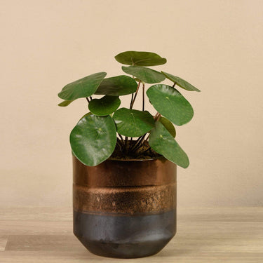 المعروف أيضًا باسم نبات المال الصيني، يعد هذا النبات الصناعي الشبيه بالحقيقي من نوع بان كيك طريقة رائعة لإضفاء لمسة من اللون الأخضر على غرفة المعيشة وربما حتى إضافة بعض النقود إلى محفظتك. أوراقه الخضراء الدائرية تبرز بشكل رائع ضد الوعاء ثنائي اللون من النحاس والرمادي.