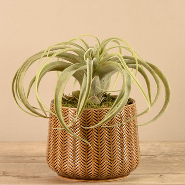 نبتة التيلاندسيا، رمز النضج والحكمة، تأتيك من بلومر بمظهرها البديع لتملأ منزلك وحياتك بالطاقة الإيجابية. تتميز هذه النبتة الصناعية بمظهر وملمس طبيعيين للغاية، مع أصيص بني مزخرف يبرز لونها الأخضر الزاهي.