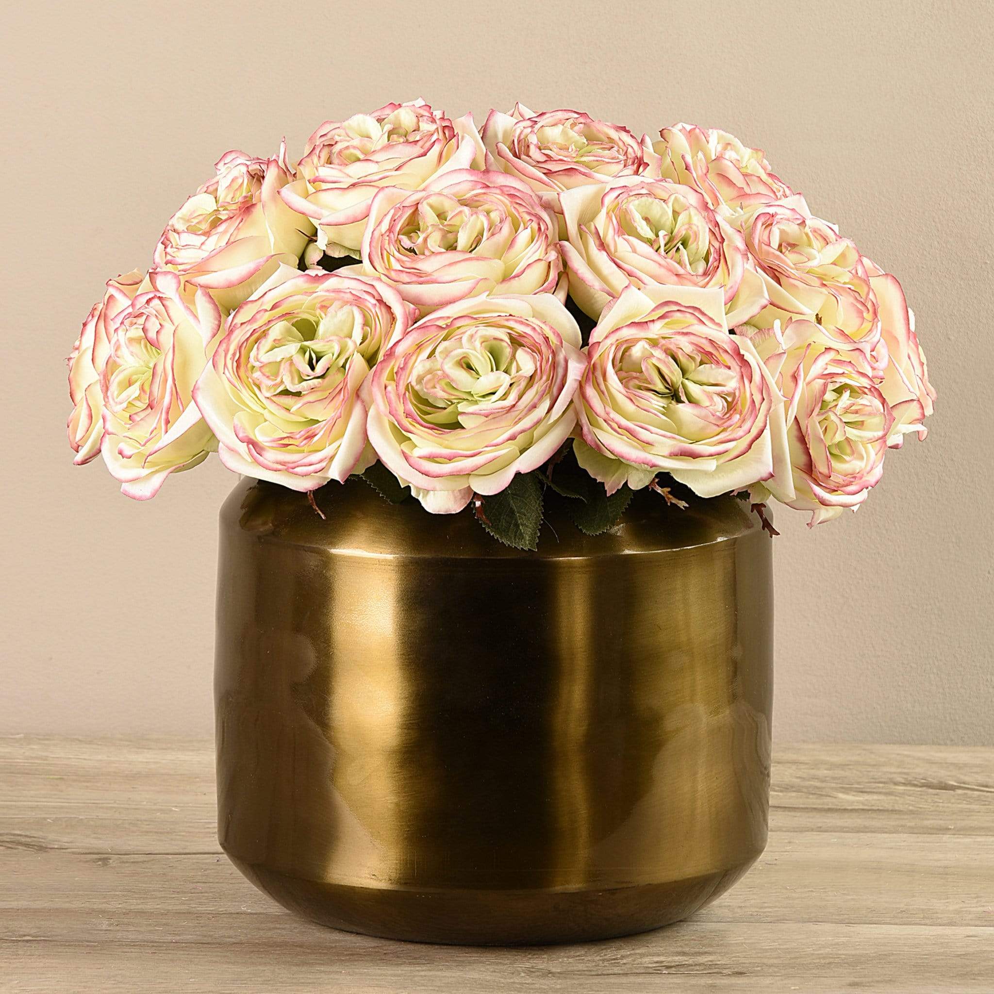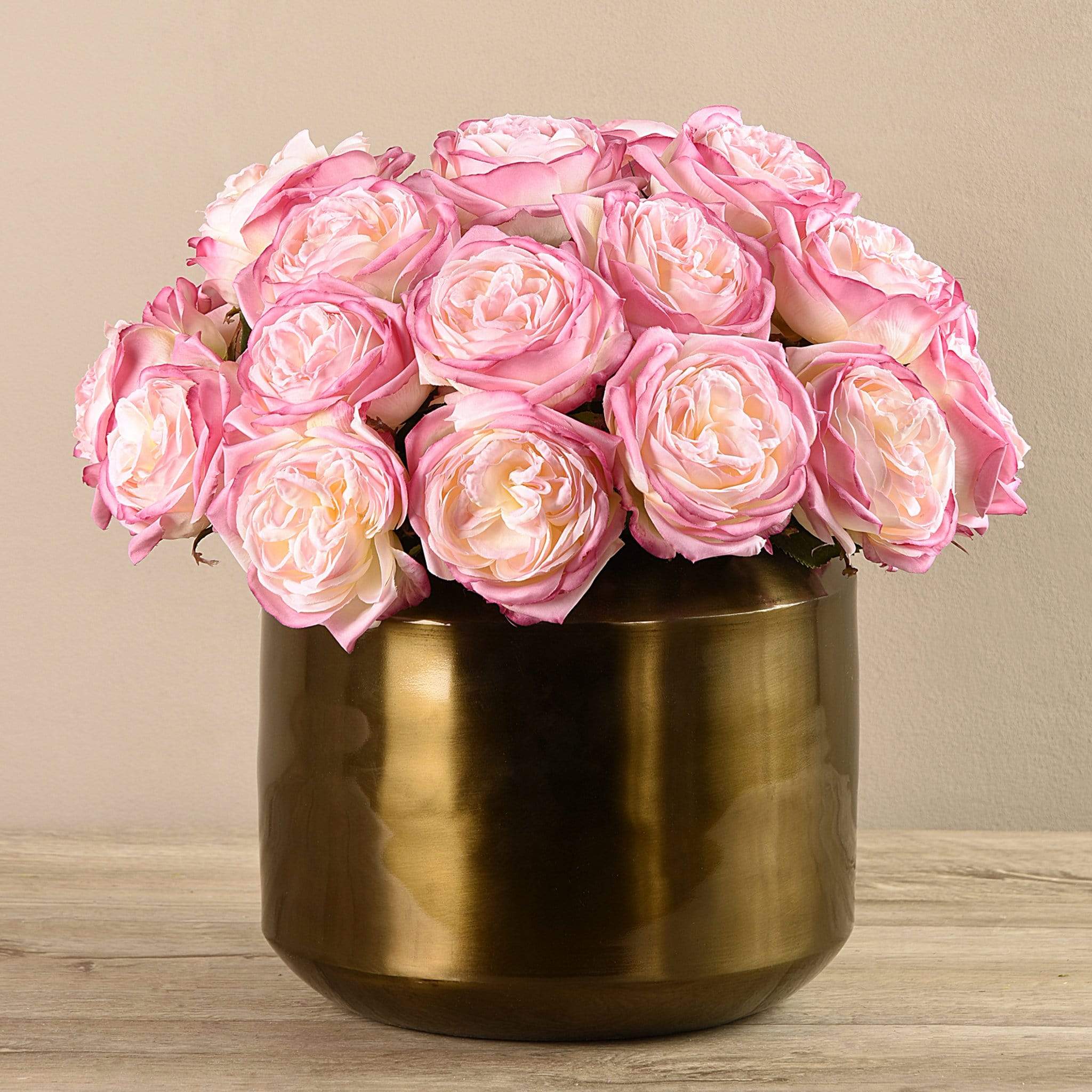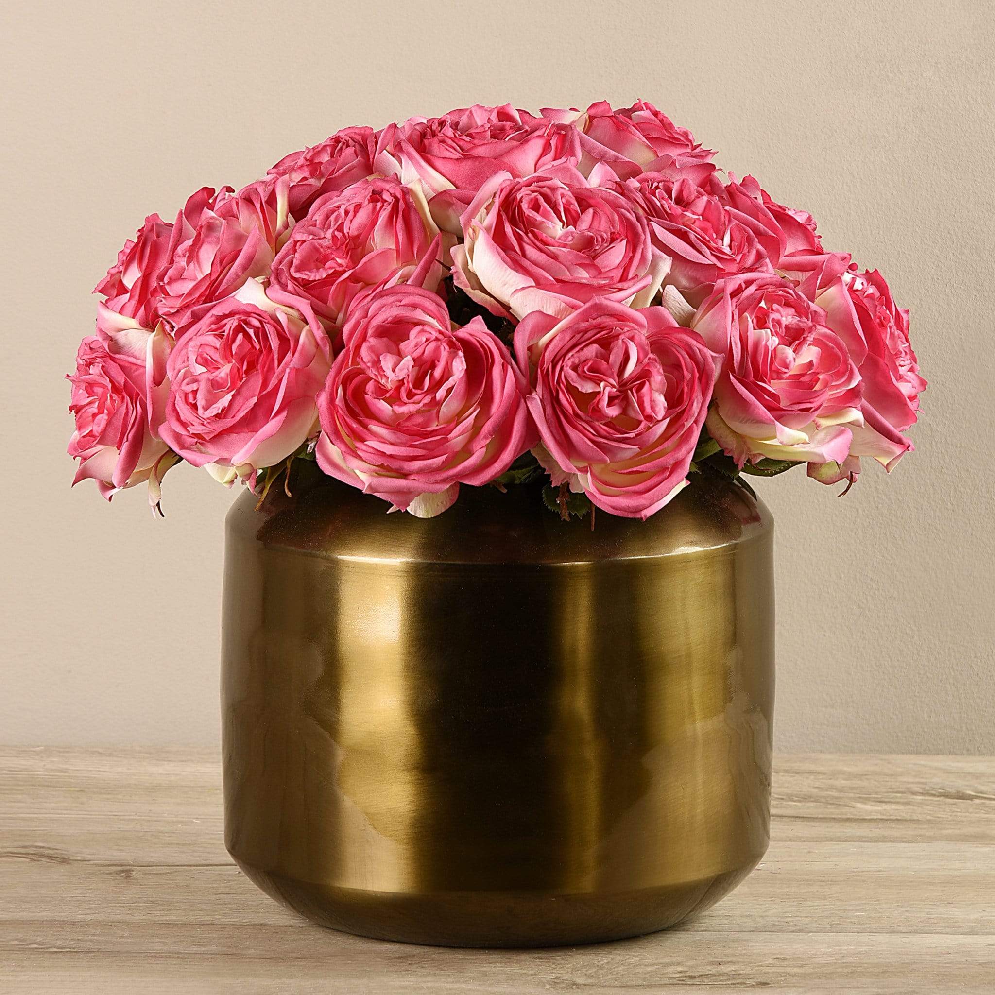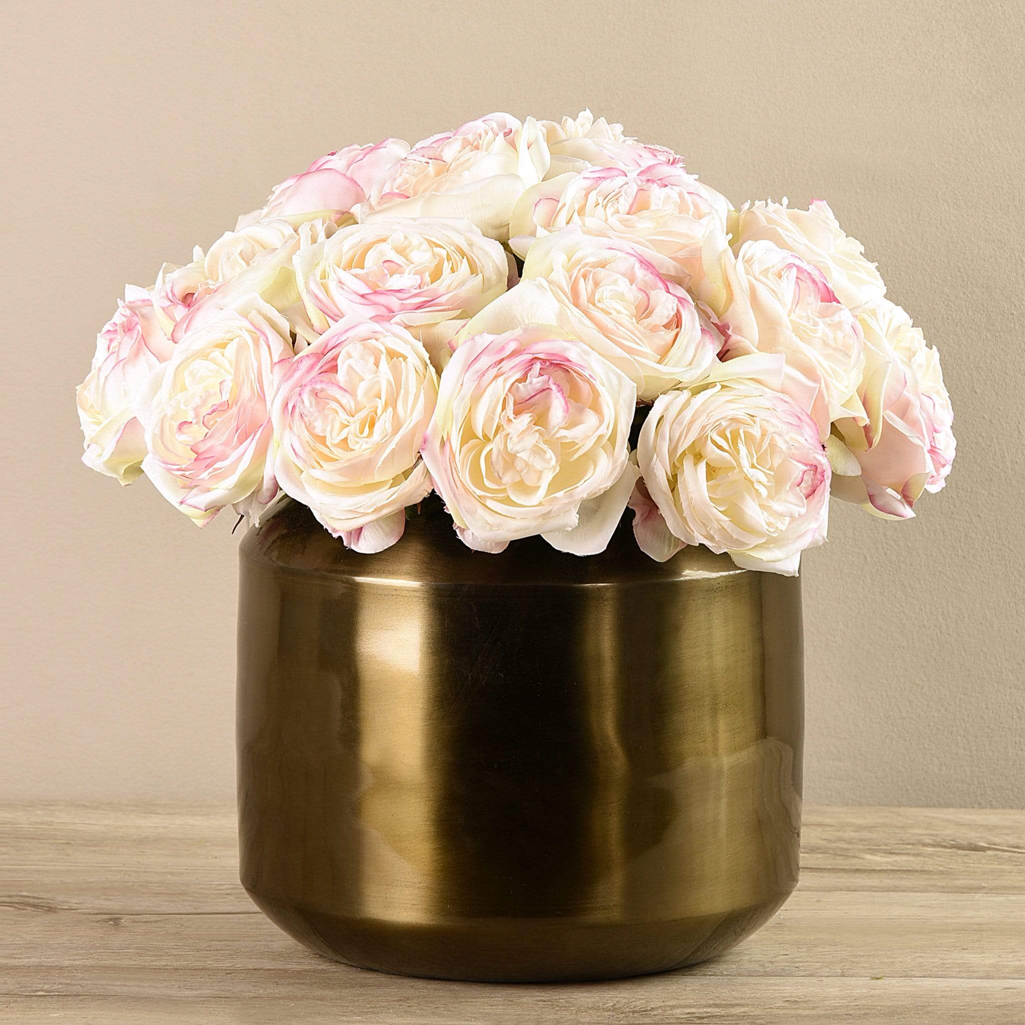 الورود ترمز للحب الأبدي، وبالطبع لا شي يعبر عنه مثل باقة الورد البديعة هذه التي لن تذبل أو تفقد سحرها أبدًا. كل وردة مصنعة بعناية على أيدي منسقي زهور متخصصين من أجود الخامات لتتمتع بمظهر وملمس طبيعيين تمامًا، وهي تأتيك منسقة داخل أصيص نحاسي أنيق لتضفي بريقًا خاصًا على منزلك.