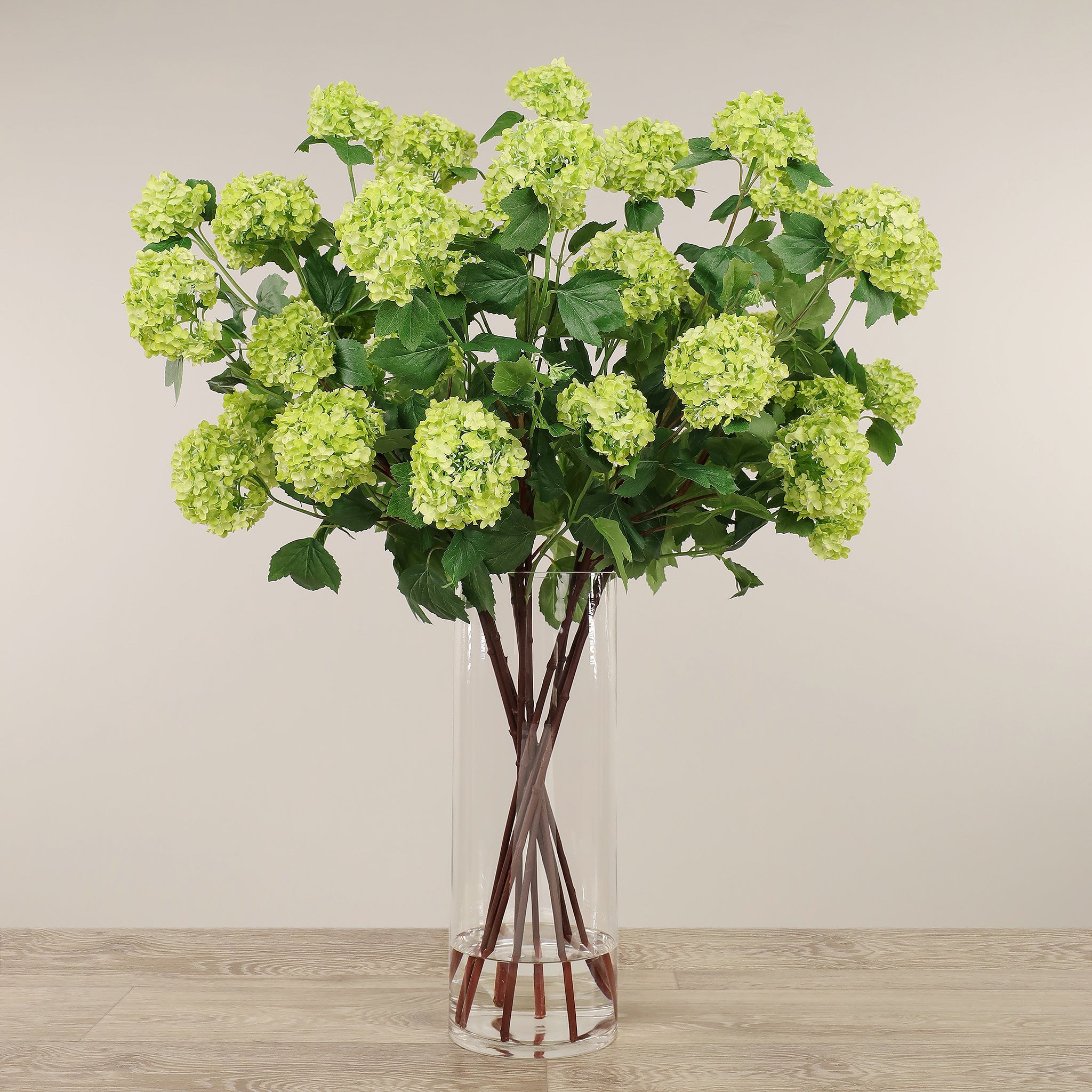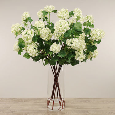 تنسيق صناعي من نبات كرة الثلج في إناء زجاجي