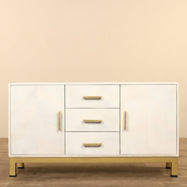 مصنوعة من الخشب مع لمسات معدنية، وتحتوي على خزانَتين كبيرتين وثلاثة أدراج لتخزين كل شيء من الأقمشة والملابس إلى الأواني وأدوات التقديم.