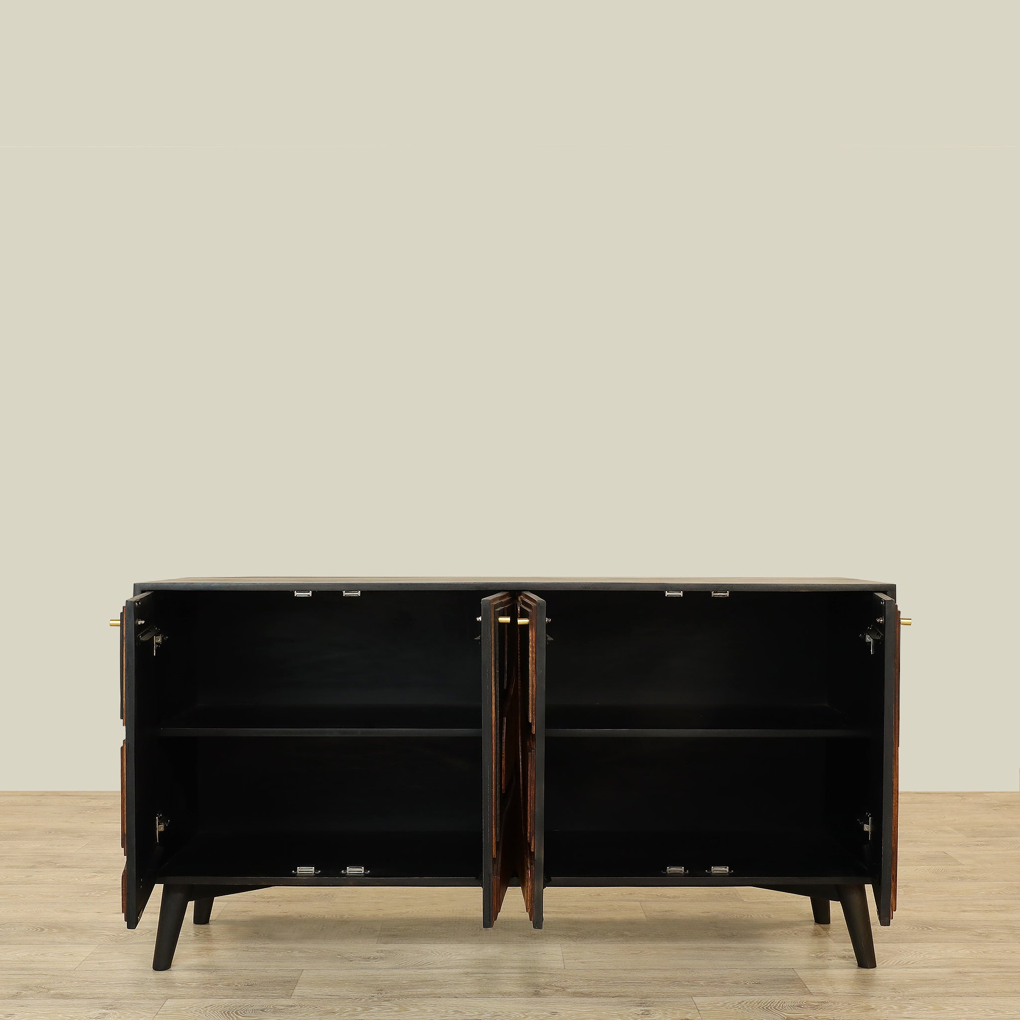 ارتقِ بمساحة معيشتك مع هذه الخزانة الجانبية الخشبية الأنيقة، المصممة ببراعة لتجمع بين الوظائف العملية والتصميم الكلاسيكي الخالد.