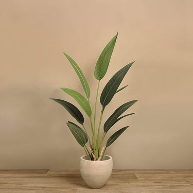 A favorite choice of interior designers, this artificial Strelitzia Palm is effortlessly chic and contemporary. It's a symbol of thoughtfulness, joy, and beauty – the sort of qualities every home should be filled with. This lifelike tree comes fully assembled. Simply bend out the branches and place in a stylish pot to complete the look.