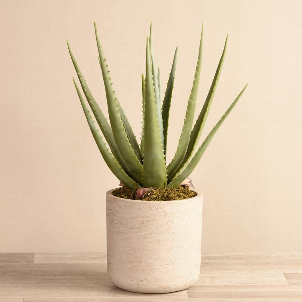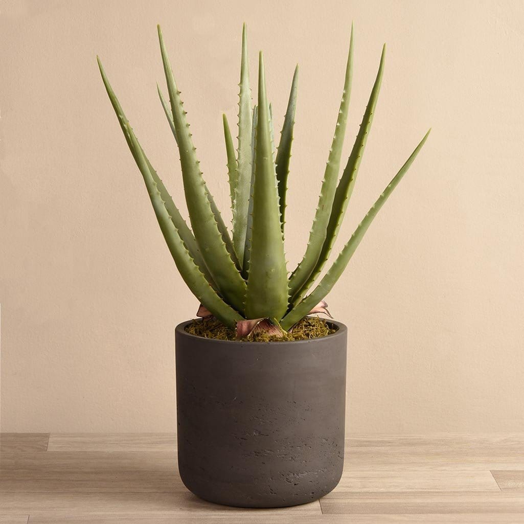 Soothing and vibrant, this artificial aloe plant looks and feels like the real thing. Its contemporary cement pot adds a trendy air to any living space.