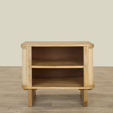 Crafted from high-quality wood and rattan, this stylish table in a beautiful tan color is perfect for storing your essentials while adding a touch of art and sophistication to your space.